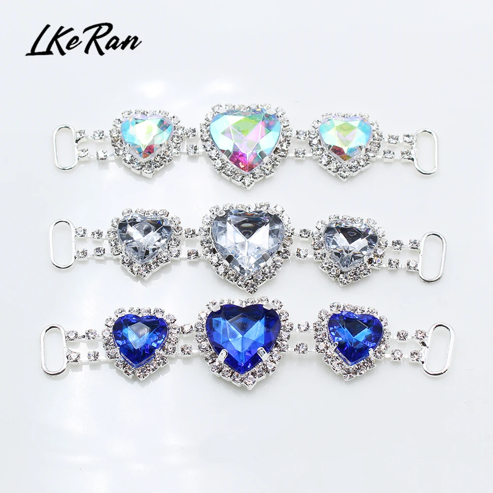 13 Цвет 2 шт. 2,2*8,5 см Сердце Акриловые стразы Соединительные элементы для бикини с пряжкой медная цепь для одежды/пляжная одежда/Свадебный декор.