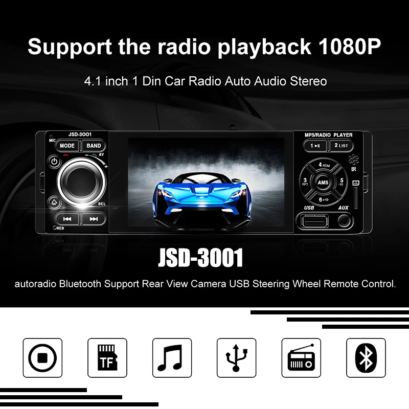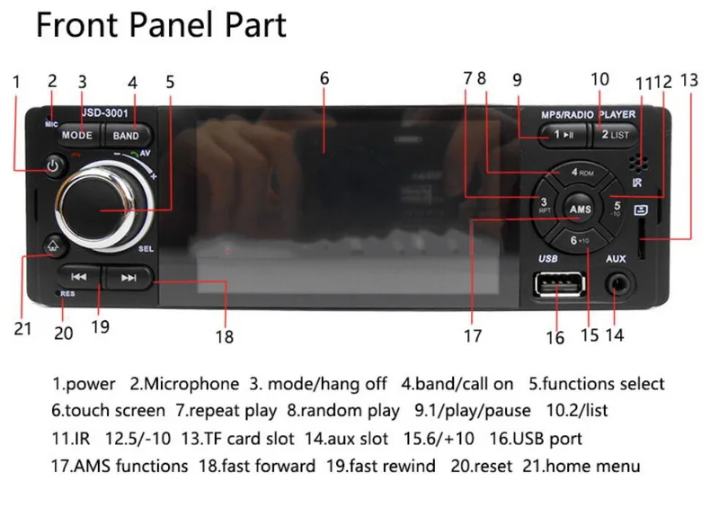 3. Поддержка Bluetooth и ручного вызова, fm-радио, USB, tf-карта AUX IN, пульт дистанционного управления и линия парковки (не включает резервную камеру)