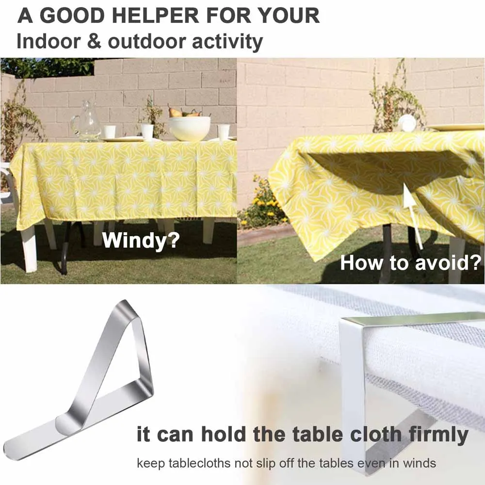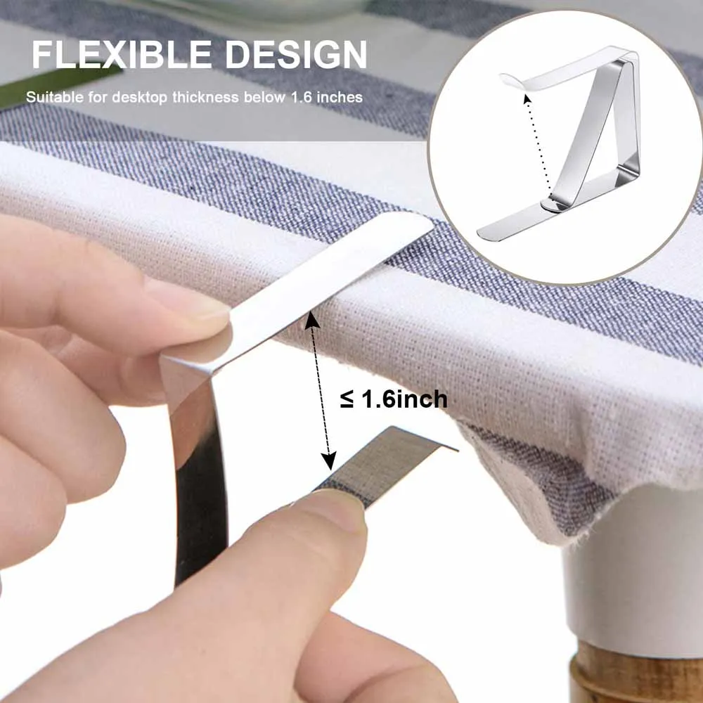1. Зажимы для скатерти изготовлены из нержавеющей стали, прочные и устойчивые к ржавчине. Защищает скатерти на большинстве столов для пикника