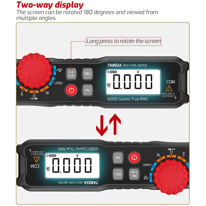 50LB TA802A ручка цифровой мультиметр 6000 отсчетов истинный RMS измеритель напряжения умный ручка-тип метр с уровнем тестирования для измерения