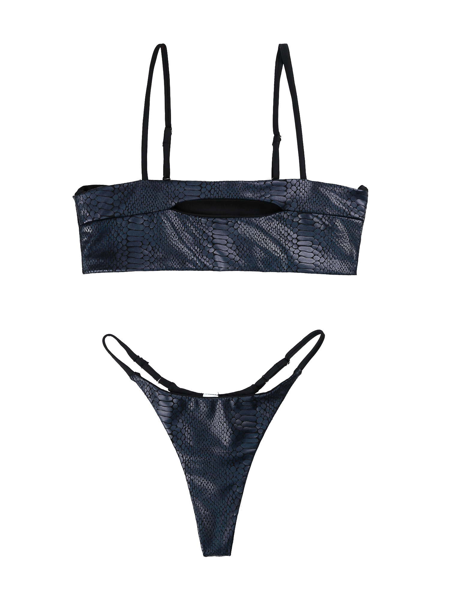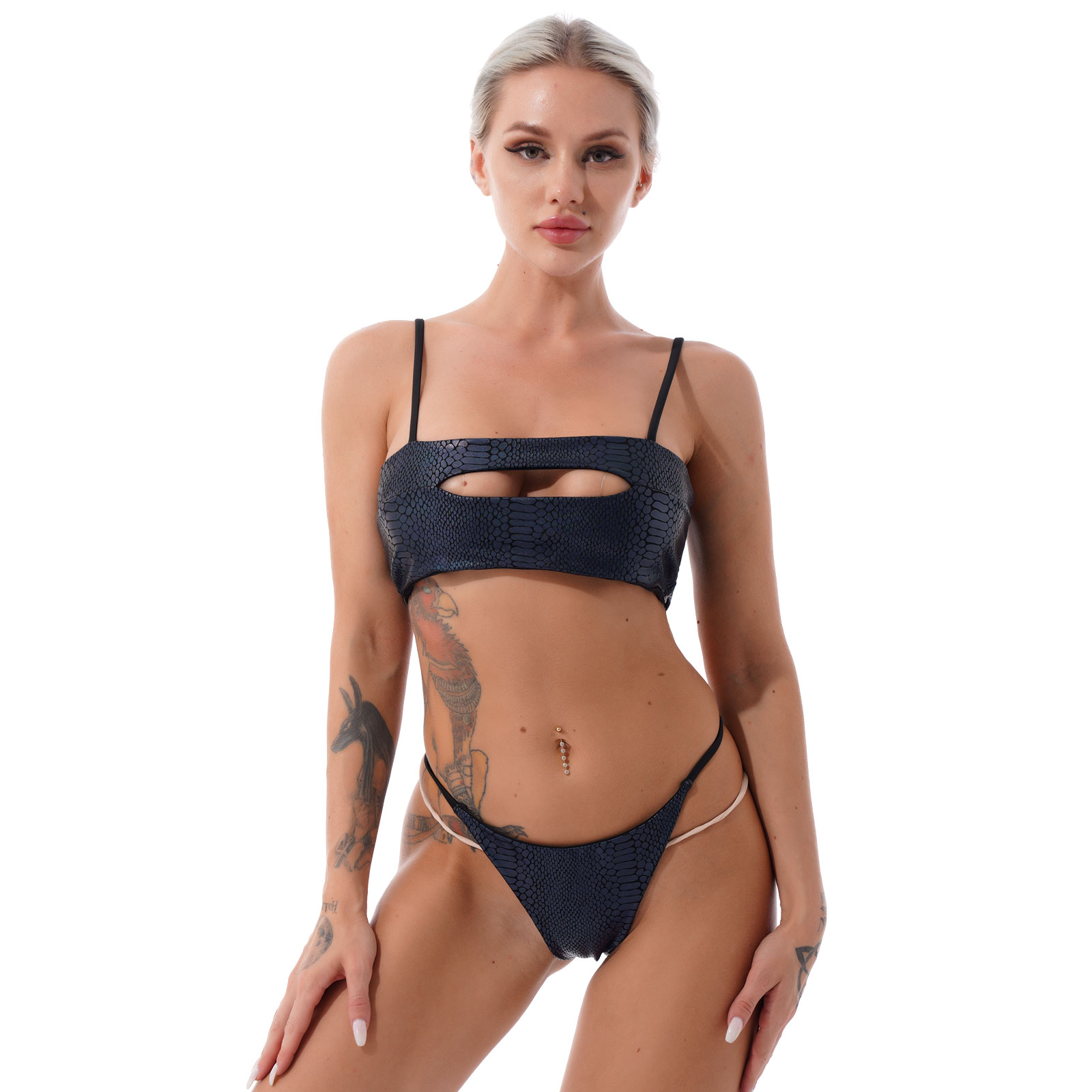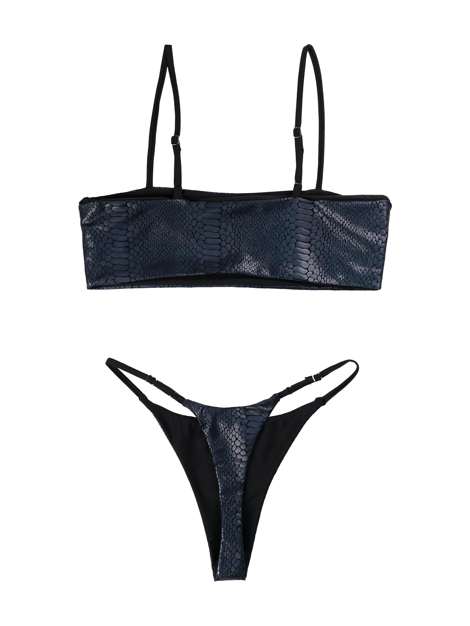 Комплект бикини с блестящим принтом змеиной кожи сделает вас привлекательным в толпе.