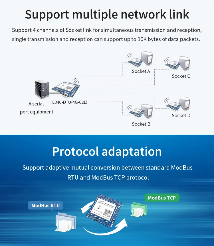 E840-TTL-4G02E 4G LTE IPX интерфейс TTL UART беспроводной приемопередатчик LTE-FDD WCDMA GSM последовательный порт к серверу двунаправленный модуль