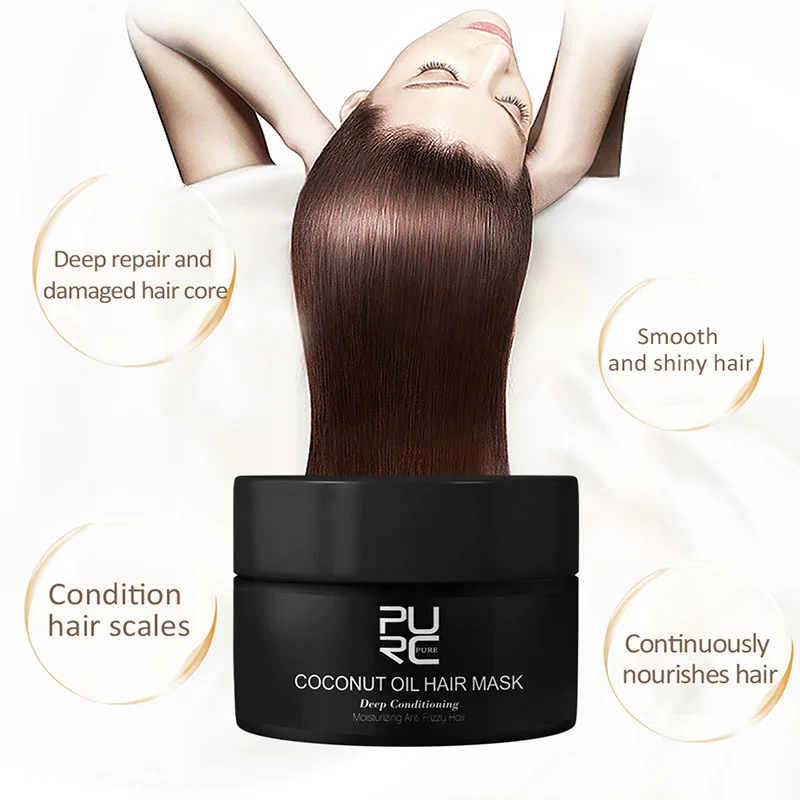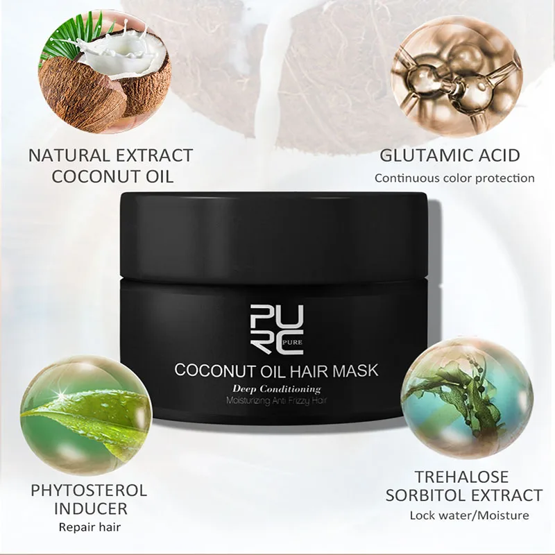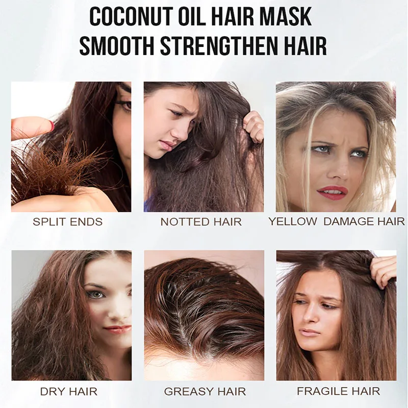 1. Маска для волос с кокосовым маслом-это богатая, кремовая натуральная маска для волос, предназначенная для увлажнения и укрепления поврежденных волос.