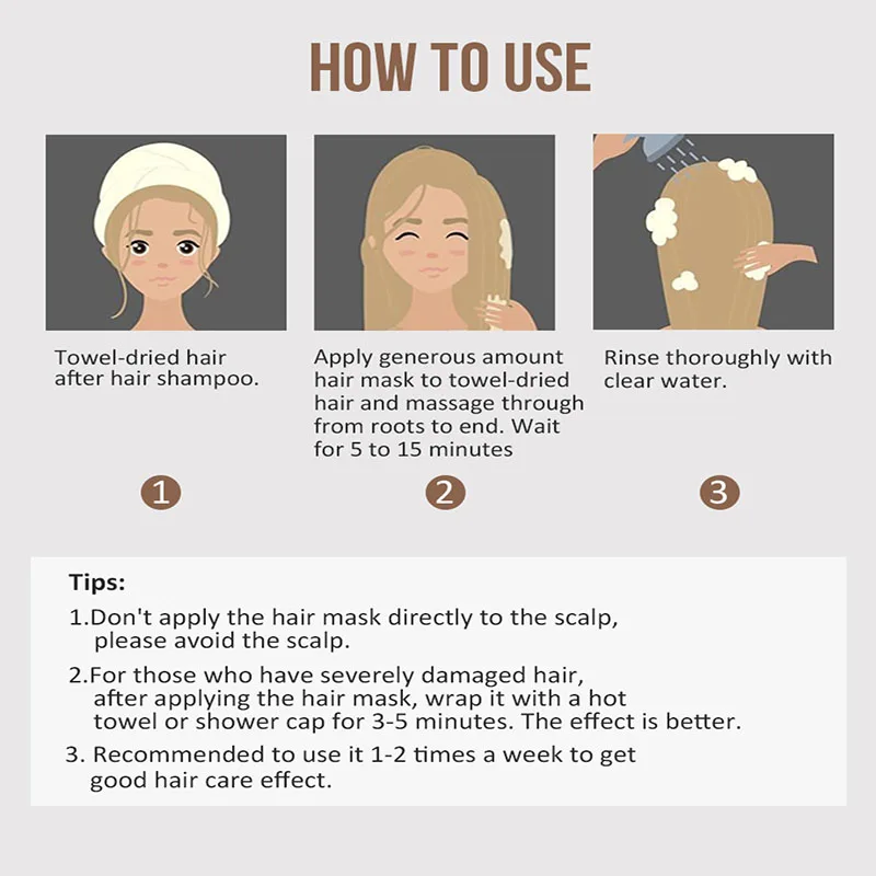 2. Глубокое кондиционирование и утолщение волос формула помогает улучшить текстуру волос и энергично борется с поломкой путем увлажнения, разглаживания и уменьшения завивки, подходит для всех типов волос, без лишней грубости и не тестируется на животных.