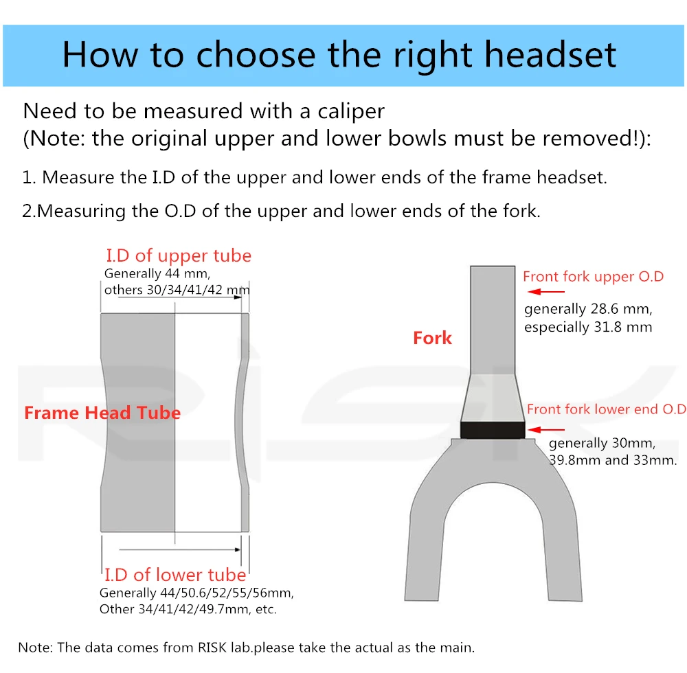 (1) подходит для большинства горных велосипедов и часть дорожных велосипедов с внутренним диаметром головки трубки 44 мм, в сочетании с рамкой 28,6 мм с плоской вилкой, или 1-1/2 дюйма стандартная конусная вилка труба рама.