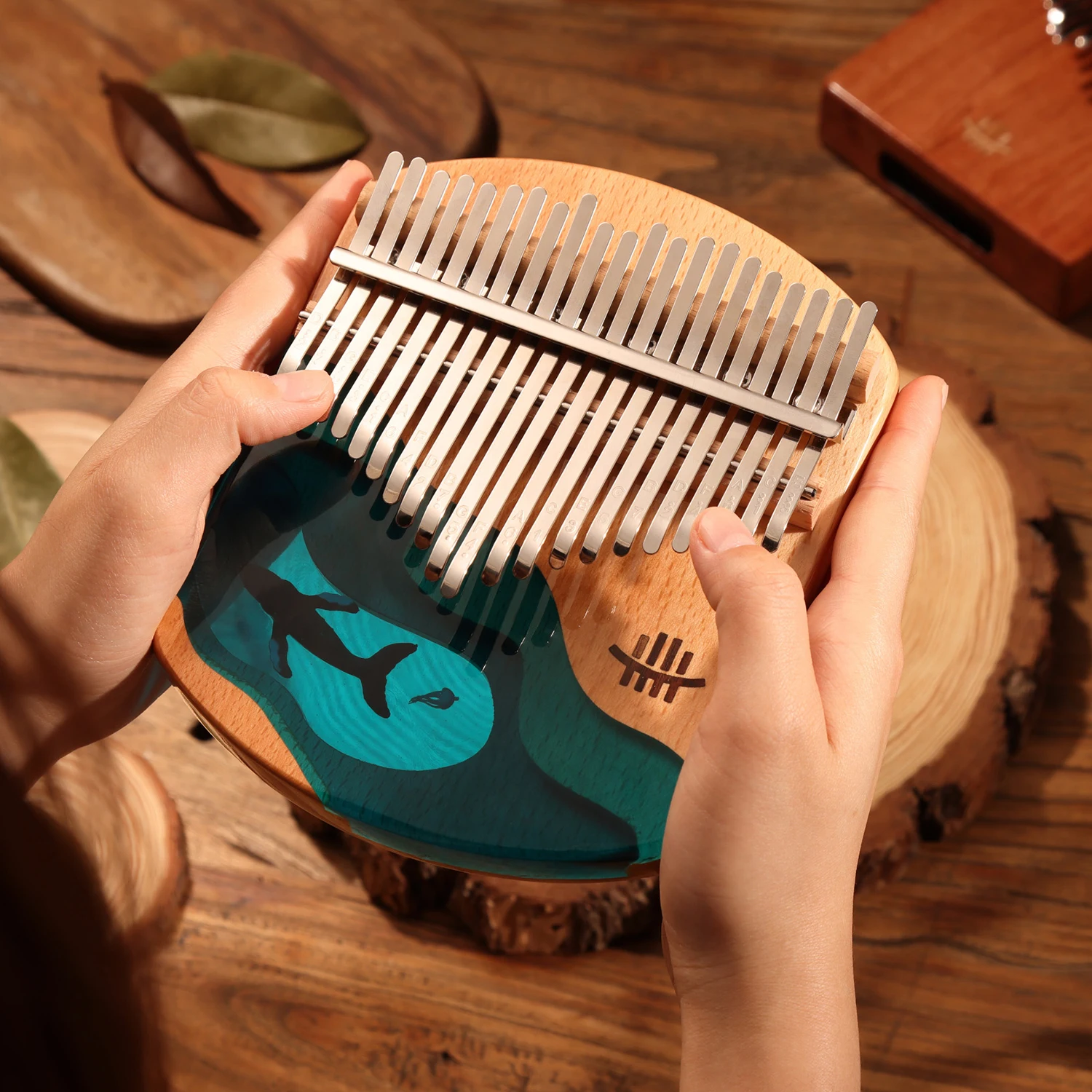 С 21 клавишей разного диапазона пальцевое пианино имеет больше игрового пространства, чем 17 клавиш.