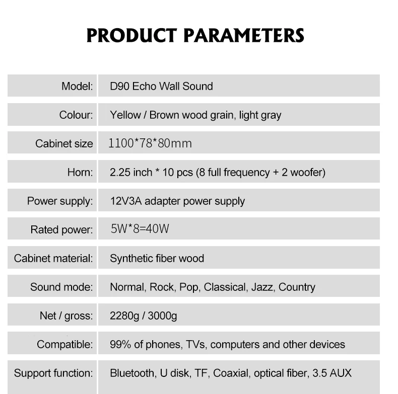 Поддержка функции: Bluetooth, встроенный u-диск и флеш-карта памяти TF, коаксиальный кабель, волоконно-оптический кабель, волоконно-оптический 3,5 аудио воспроизведения