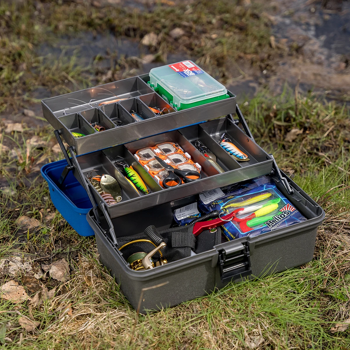 Ящик рыболовный бренда Helios производится в России на заводе Тонар! Наш ящик рыбацкий - полезное приобретение для каждого рыболова. Он поможет легко навести порядок в своих снастях, разложить приманки по группам, крючки по размерам, леску по диаметру и все остальное по удобным параметрам. Каждая полка поделена на секции, что значительно облегчает подбор необходимых приманок или других предметов на рыбалке. Мы производим наши рыболовные ящики из ударопрочного полипропилена, поэтому они послужит вам не один год, а снасти внутри него будут под надежной защитой. Ящик рыболовный Тонар имеет достаточный размер, чтобы разместить на дне две-три спиннинговые катушки. Ящик рыболова - это еще и отличный подарок, к тому же его можно не упаковывать, достаточно прикрепить нарядный бант к ручке и положить внутрь открытку. Закрывается этот ящик подарочный на прочную защелку и имеет удобную ручку для переноски.