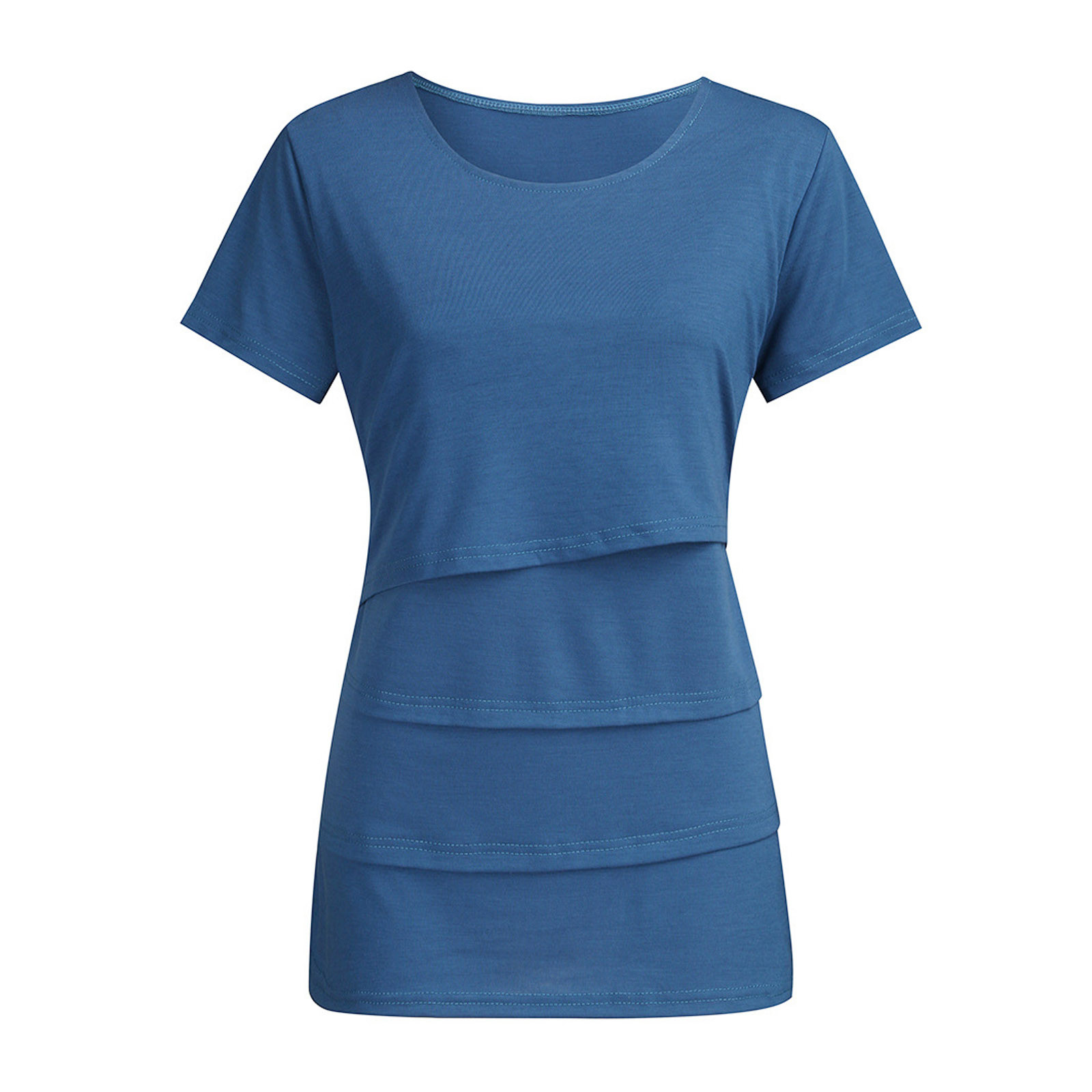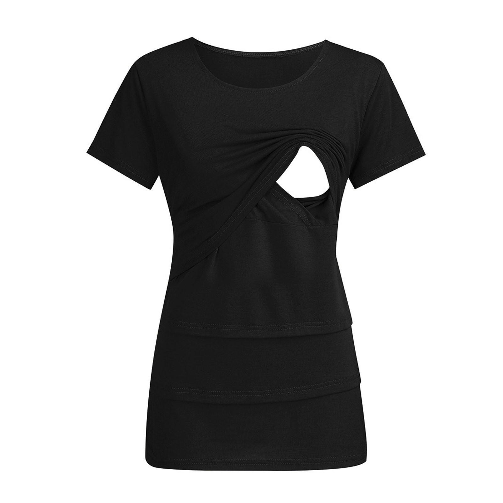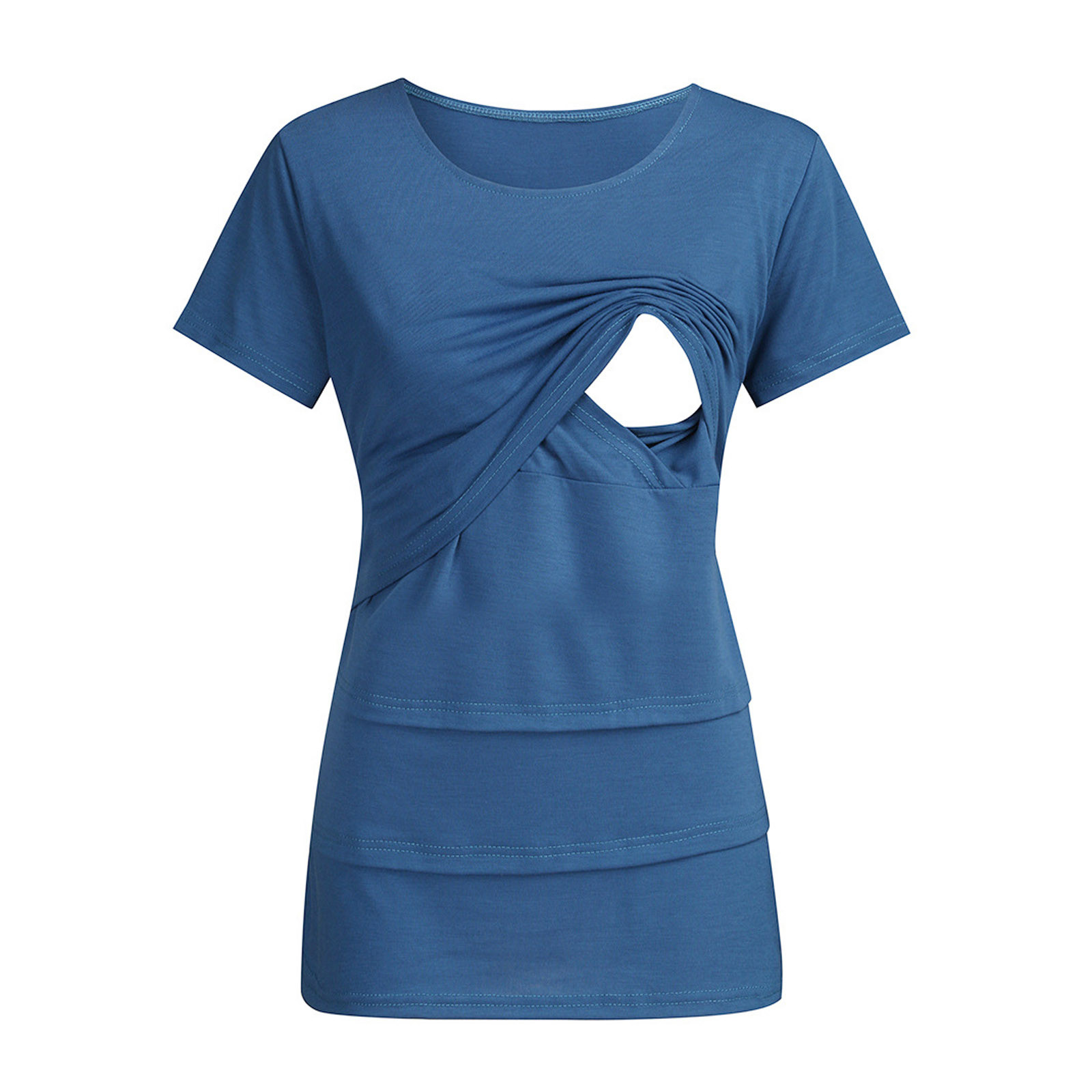 Однотонная блузка для беременных женщин с круглым вырезом и коротким рукавом для кормления грудью