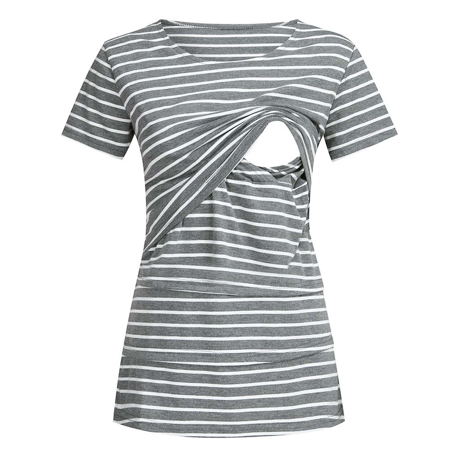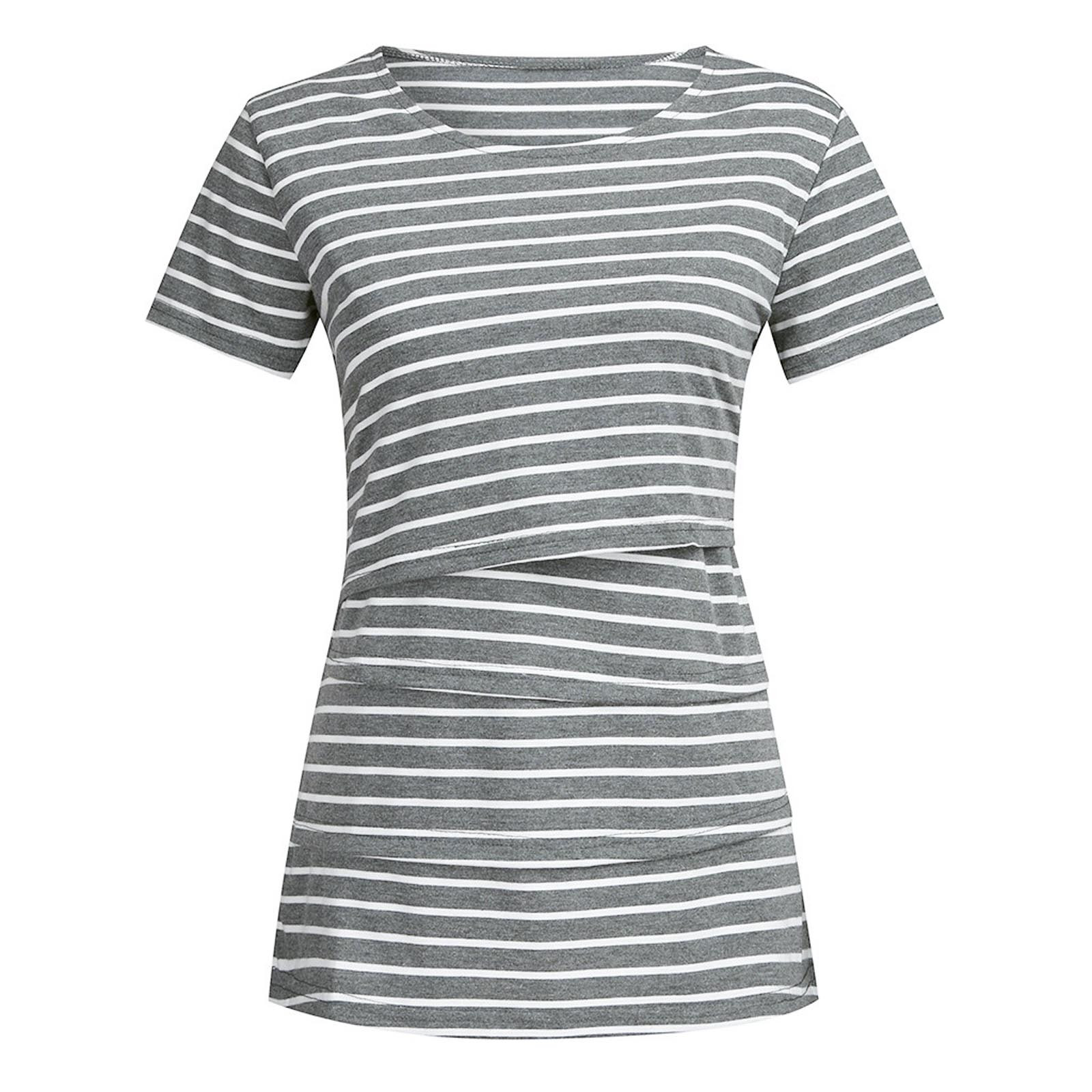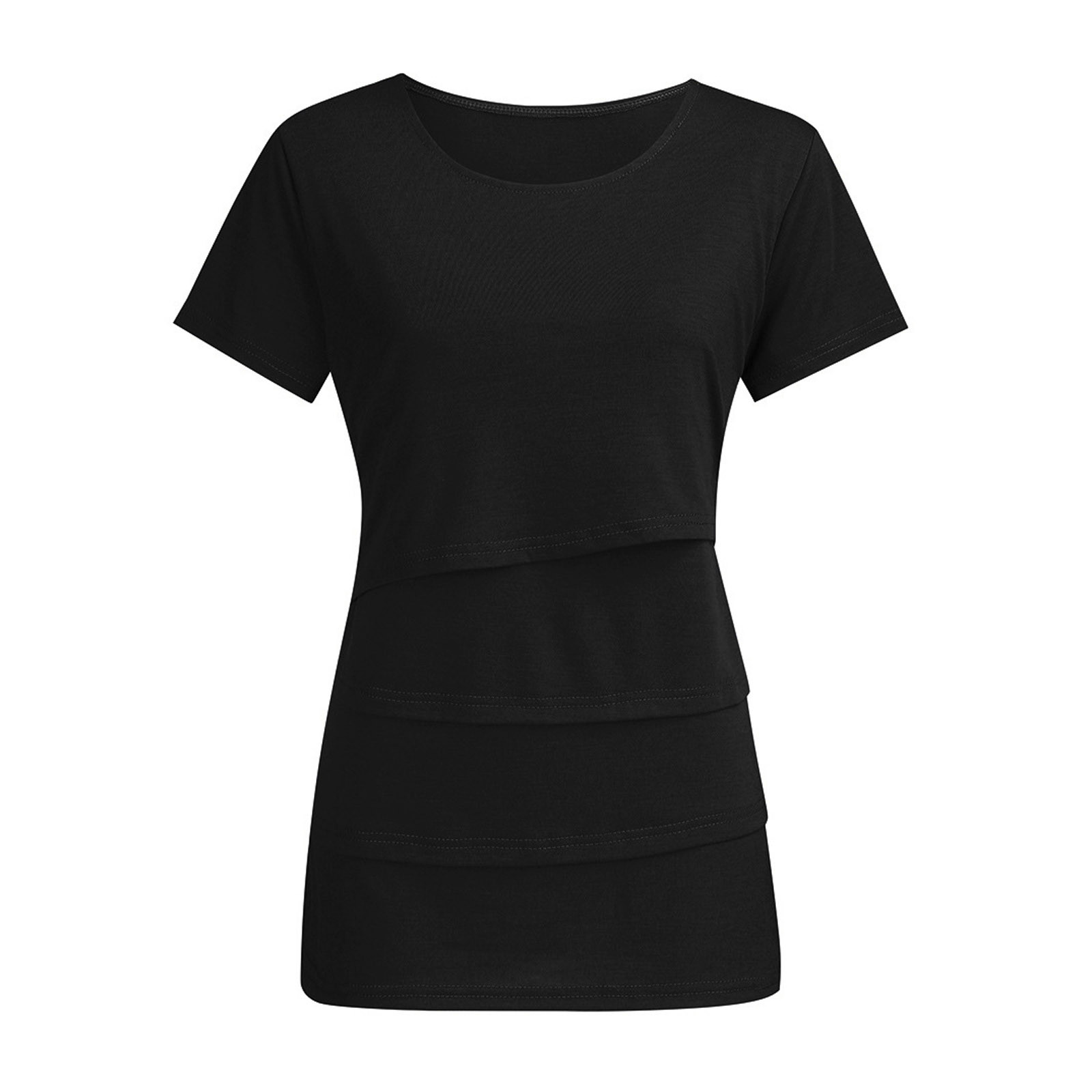 Однотонная блузка для беременных женщин с круглым вырезом и коротким рукавом для кормления грудью