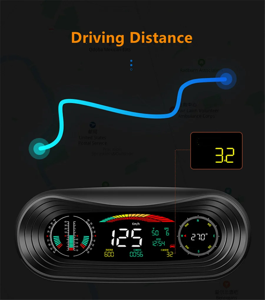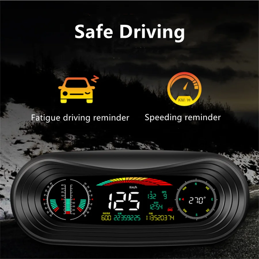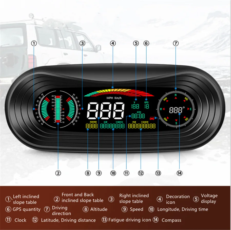 Функция:GPS измеритель скорости наклон Инклинометр автомобильный наклон угол наклона транспортир Широта Долгота умный компас