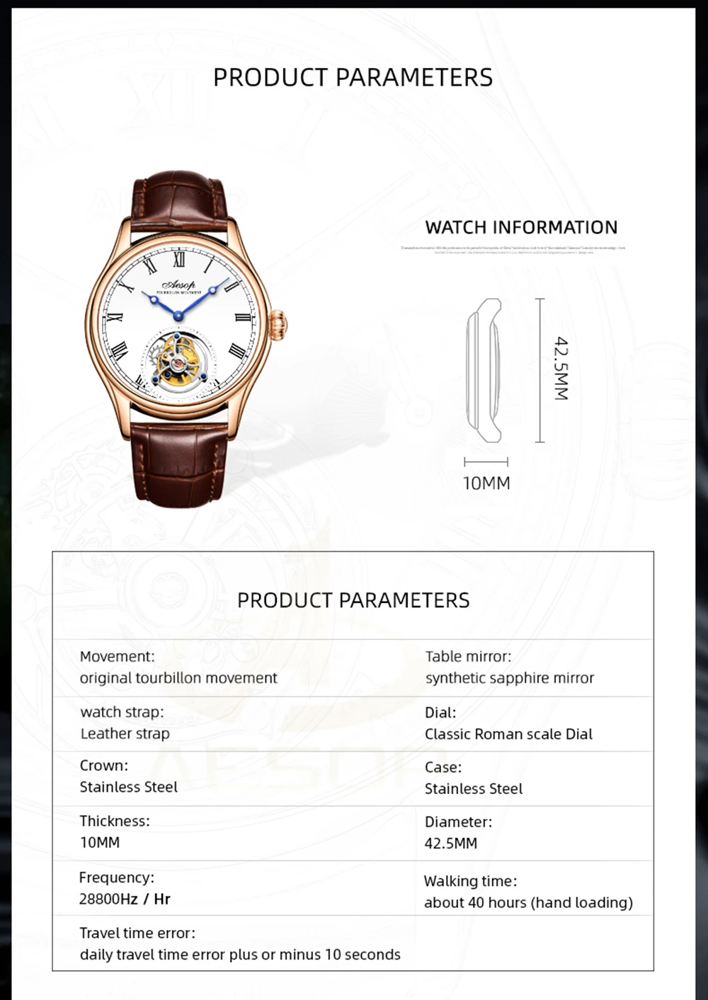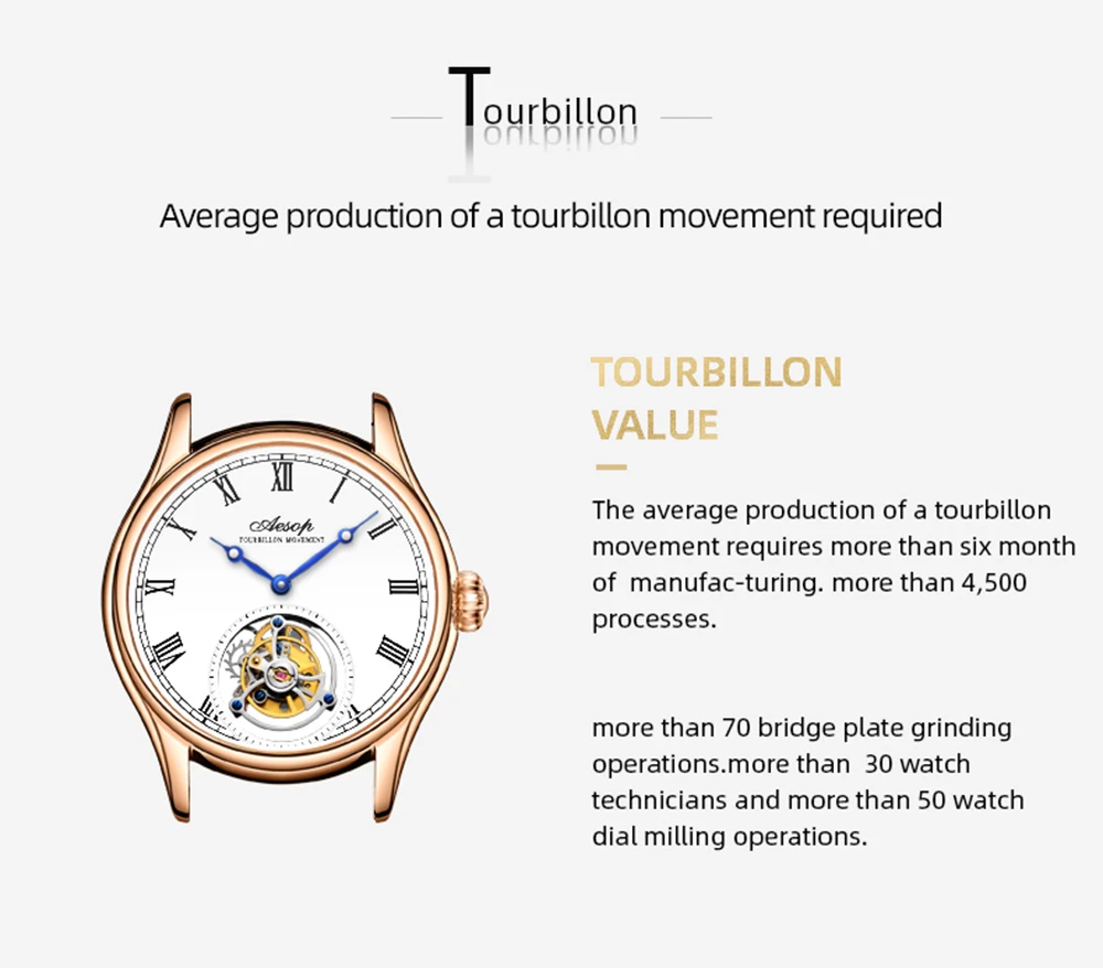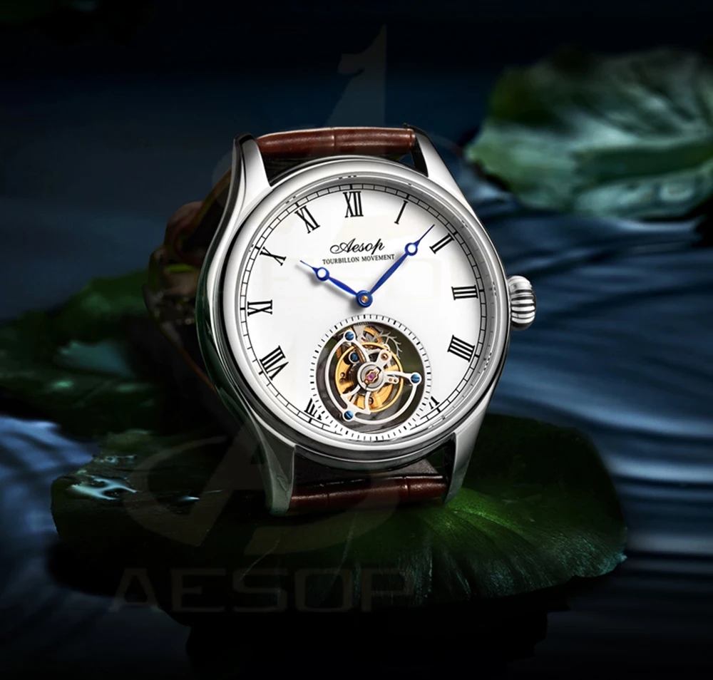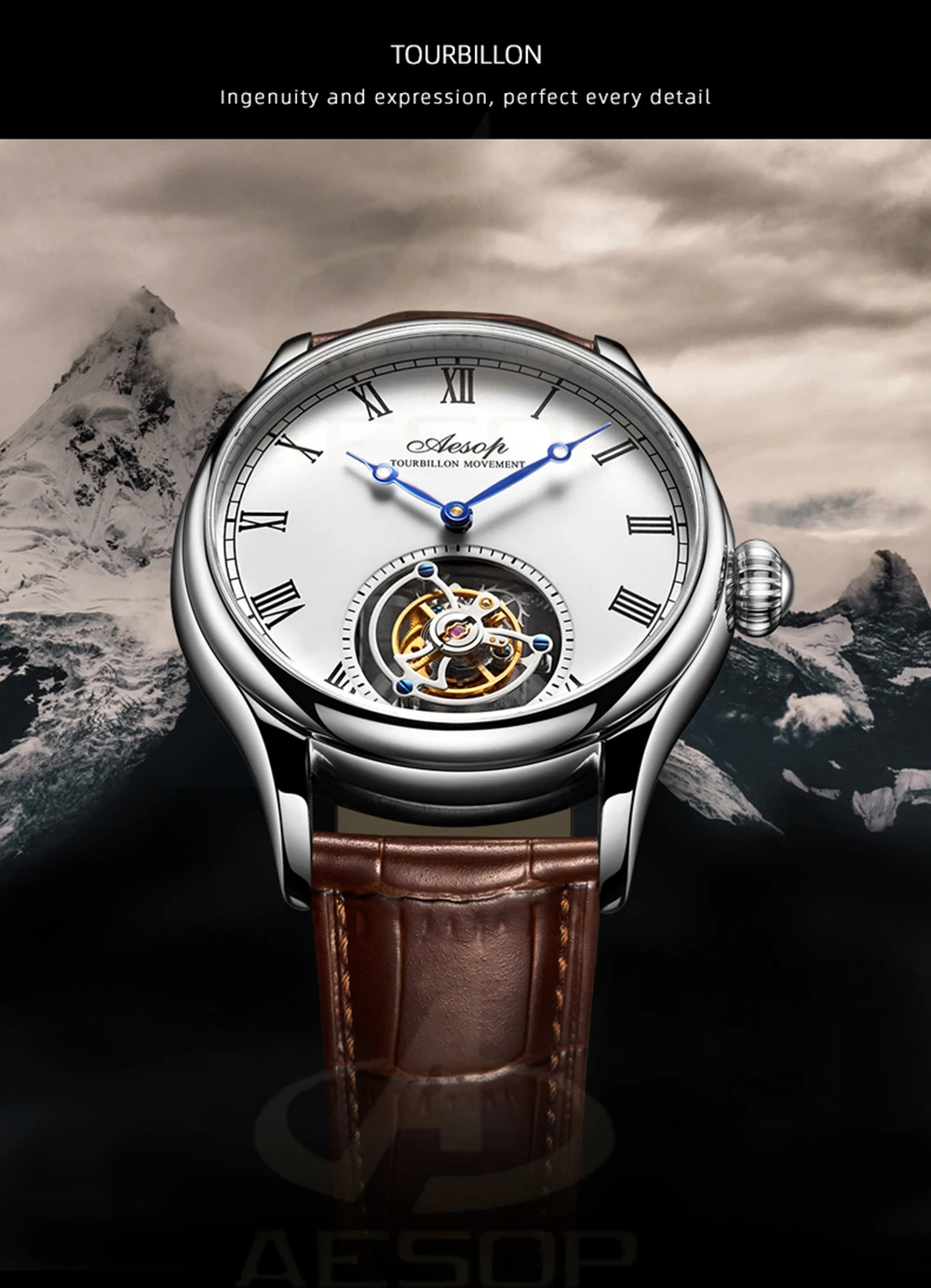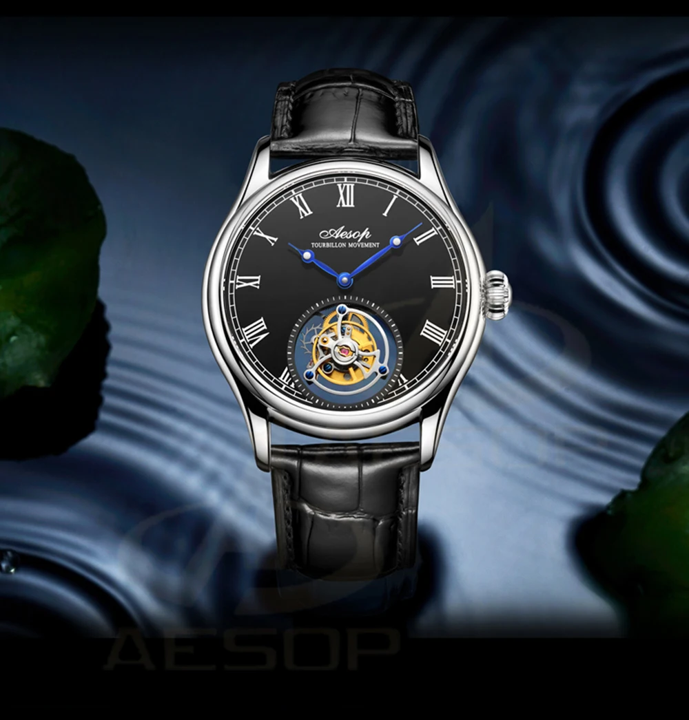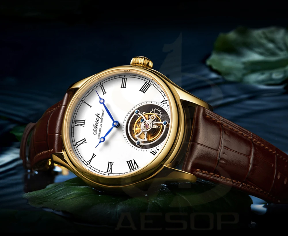 AESOP двухсторонние сапфировые механические часы высокого класса Tourbillon Роскошные Механические Мужские часы 100 м водонепроницаемый кожаный ремешок