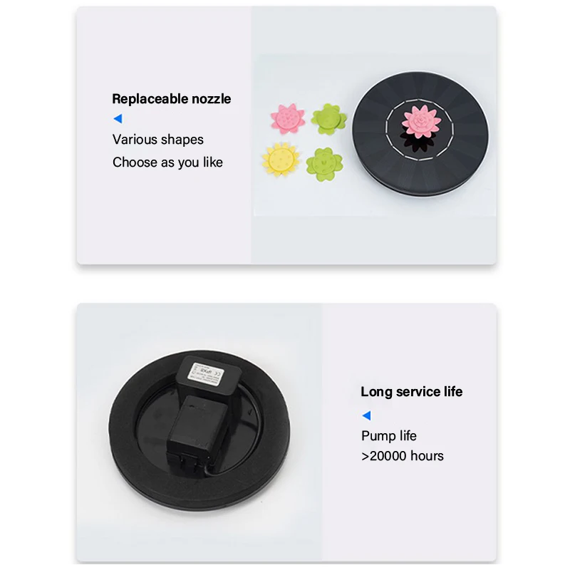 Предложение: пожалуйста, подтвердите, что в вашем фонтане достаточно воды, чтобы этот Солнечный водяной насос мог оставаться полностью под водой. Пожалуйста, Регулярно очищайте насос, чтобы избежать блокировки насоса от грязи.
