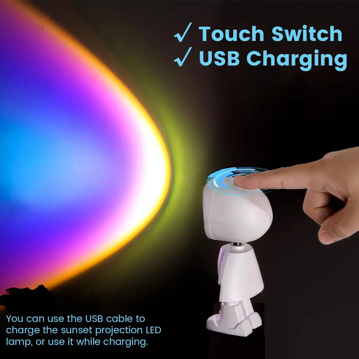 [Два способа поставки] вы можете использовать usb-кабель для зарядки светодиодный лампы с проекцией заката или использовать его во время зарядки, что очень удобно и портативно.