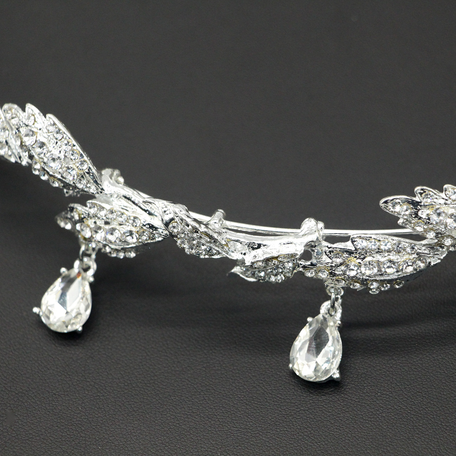 4. На Стразы Корона инкрустирована сверкающие прозрачные круглой огранки стразы и dropshaped кристаллы, не только прочный, но и великолепный; полукруглый дизайн короны, основанный на элегантном стиле, приносит лучшее в этой королевской короне, значительно показывает свою моду.