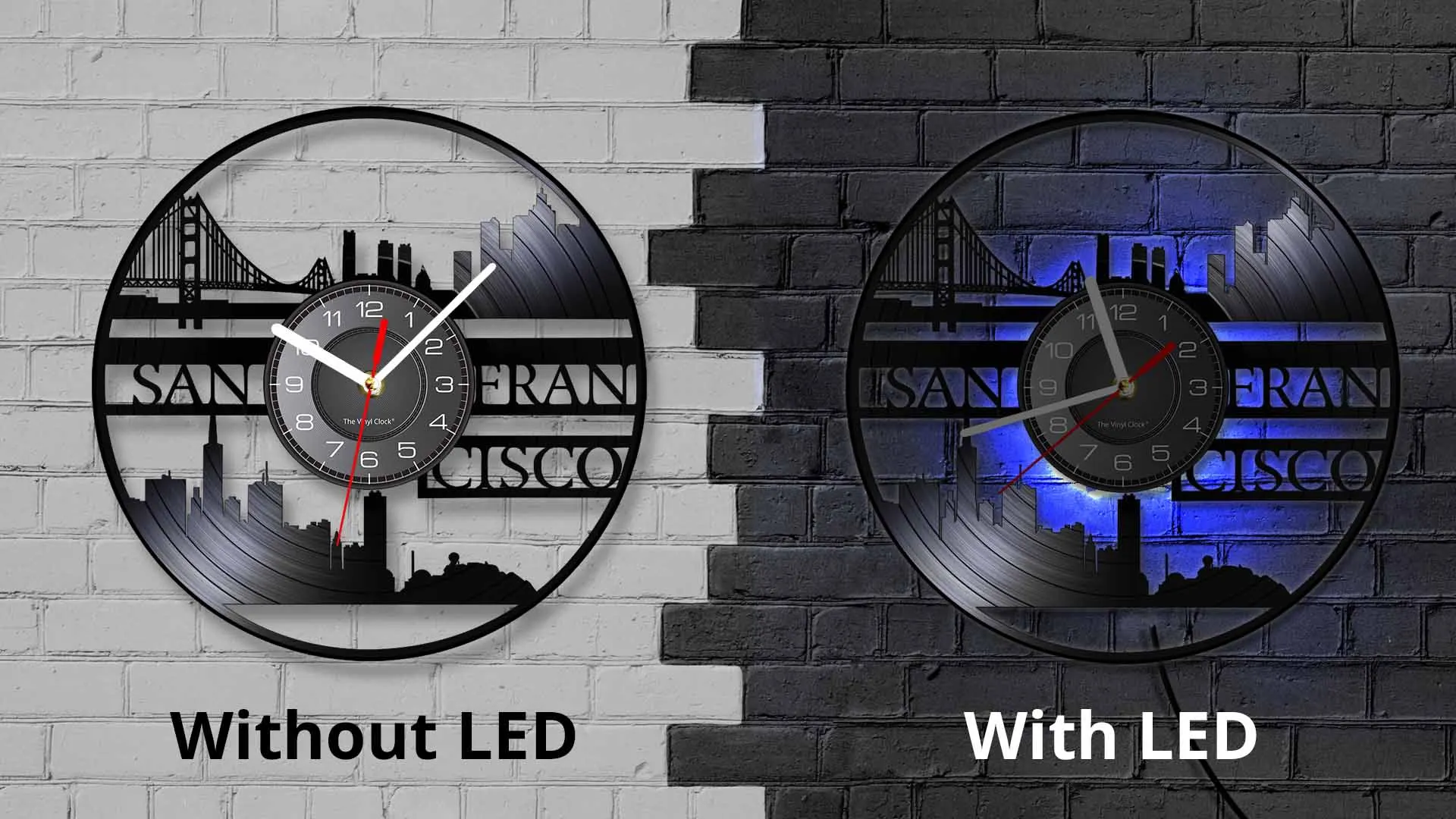 Если вы выбираете светодиодный версия светильник ing настенные часы, вам будет предоставлена 16 ключей пульта дистанционного управления, чтобы настроить цвета светодиодный виниловые светильник. С пультом дистанционного управления, вы будете иметь различные настройки светильник, которые включают в себя Включение или выключение светильник s, пауза или воспроизведение, тусклый или изменение скорости светильник s, а также для создания радуги цветов. Идеально подходит для украшения стен, а также отлично подходит в качестве подарка.