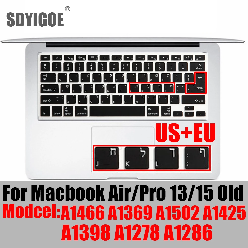 Иврит Клавиатура Обложка кожа США/ЕС Силиконовый Израиль Клавиатура для ноутбука протектор для MacBook Pro Air13/15/17 выпуска до 2015