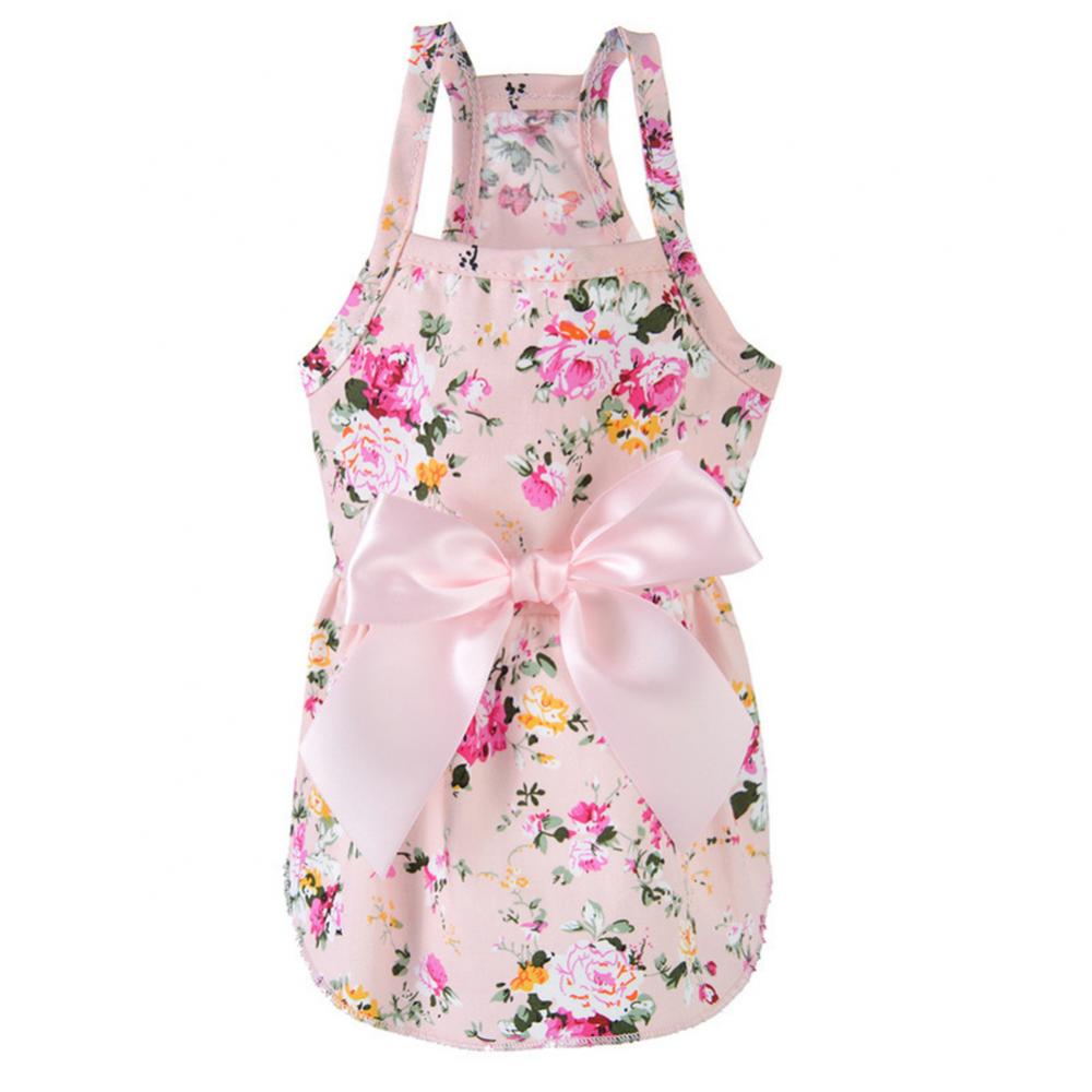 Весенне-летнее милое Хлопковое платье для домашних животных с голубым цветочным принтом костюм кошки собаки одежда милое женское стильное платье для свиданий галстук-бабочка сзади