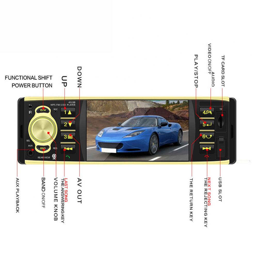 4019B 4,1 дюймов 1 Din автомобильный Радио Bluetooth видео MP5 плеер с зеркалом заднего вида Камера