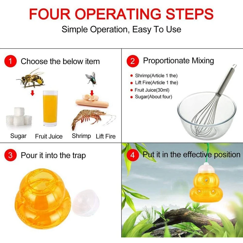 Просто поместите рецепт смеси в ловушку и Повесьте или поместите там, где вы видите жужжание вредителей.