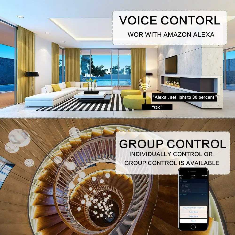 Совместимость с голосовым управлением: Alexa Echo Google Home Assistant