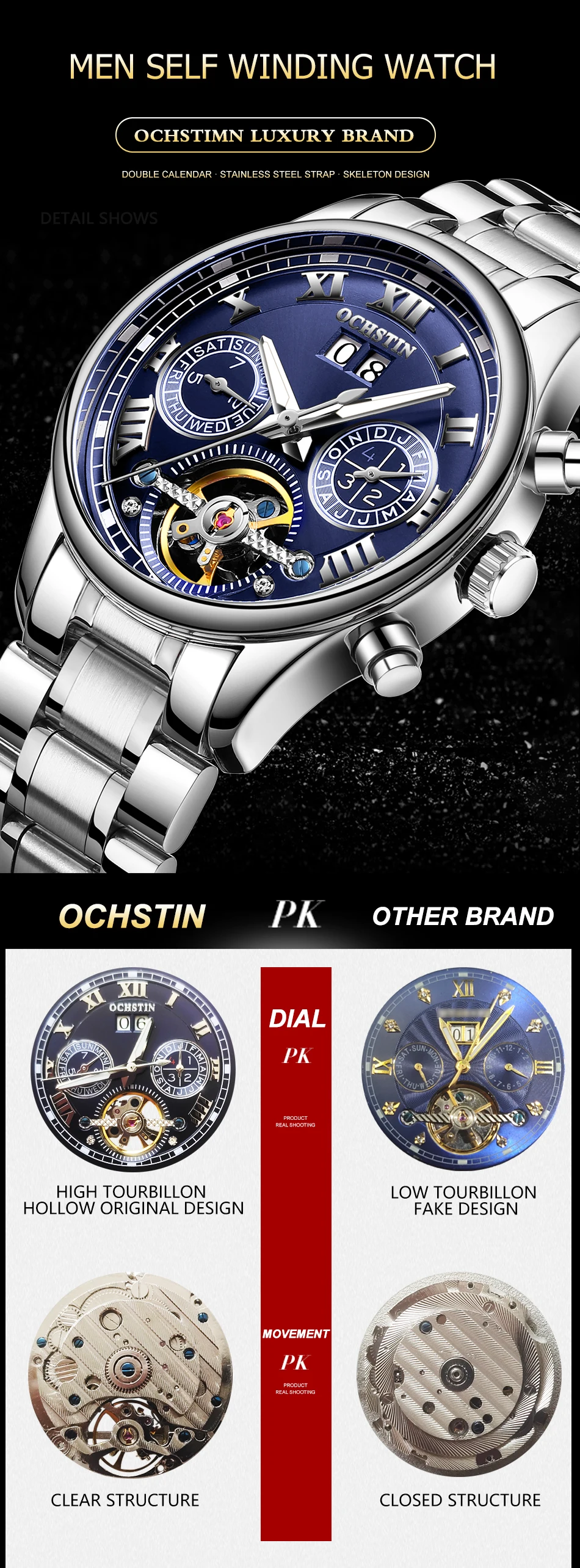 100% Новые оригинальные часы OCHSTIN