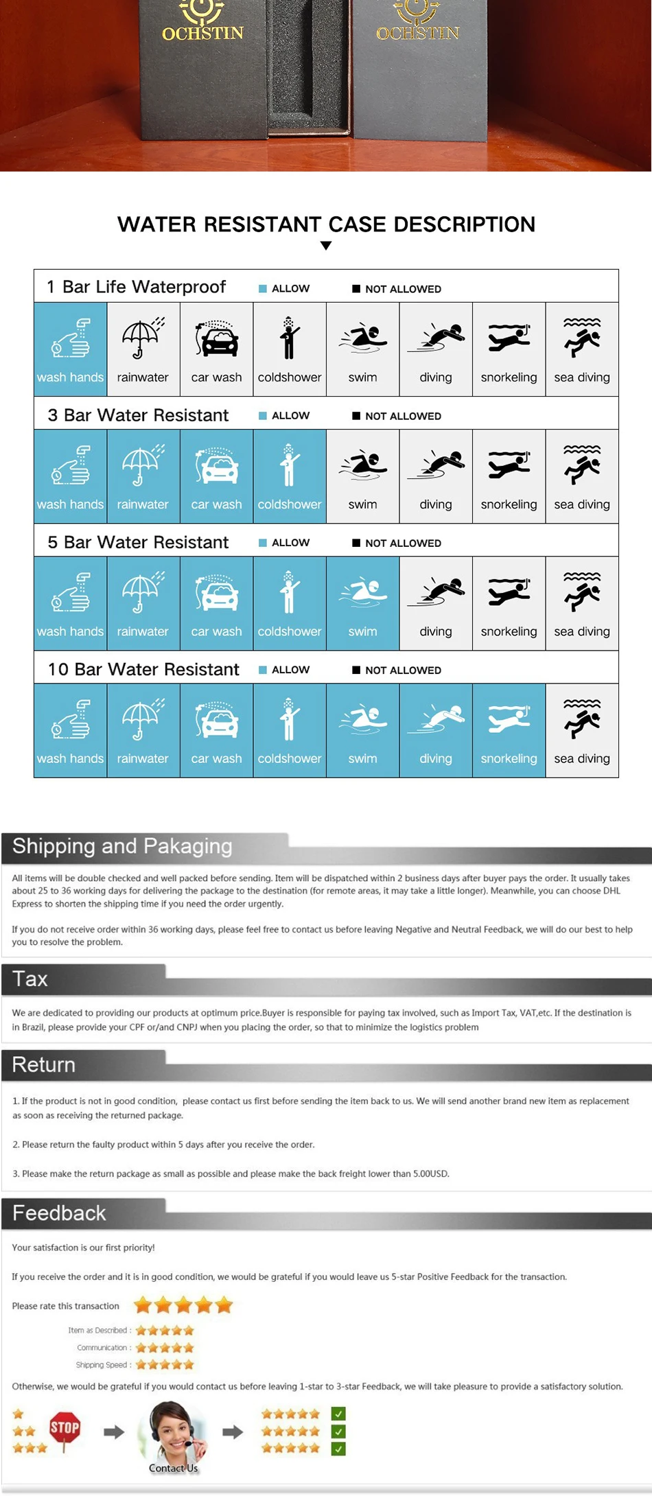 ★3 АТМ ежедневно водонепроницаемый★: Повседневная жизнь водонепроницаемая, может нести пот, случайный дождь или брызги воды, но не подходит для купания, плавания, дайвинга и так далее.