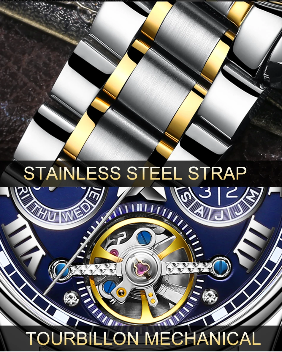 ★Дизайн циферблата★: Уникальный и модный дизайн циферблата, механический механизм турбийона. Часы используется для более 1-3 лет.