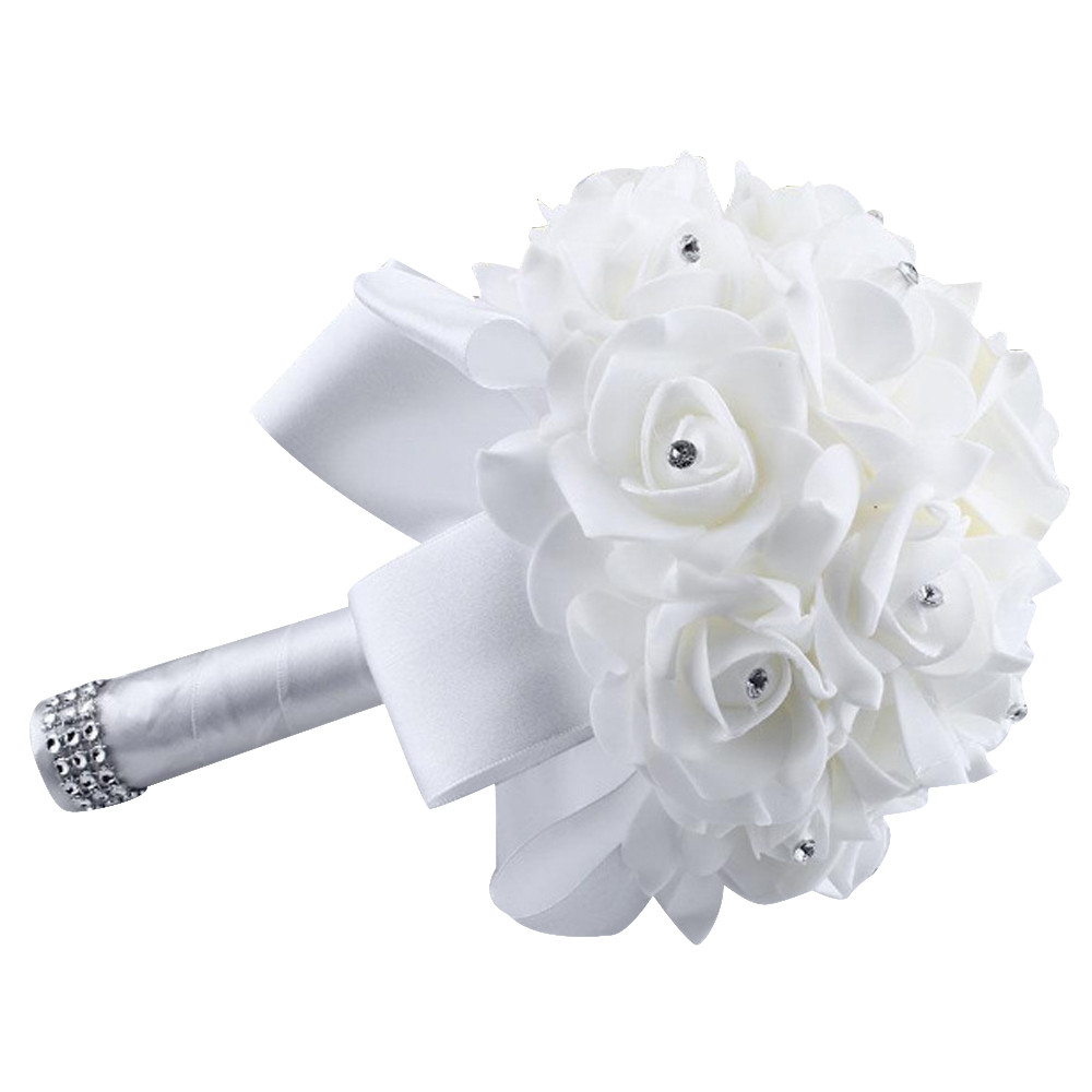 Красивые розы с кристаллами жемчужные подружки невесты держащие цветы белый/синий/фиолетовый/красный свадебный букет свадебные искусственные цветы декорации