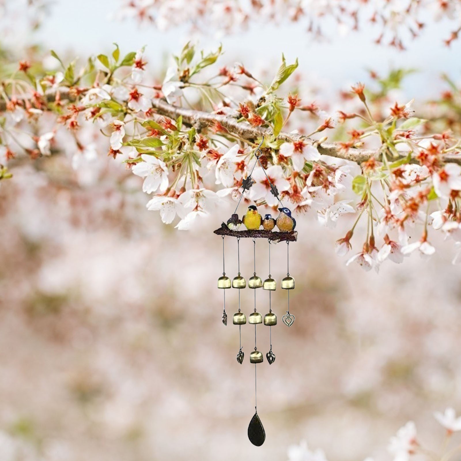 LИзысканный Дизайн: колокольчики с 9 колокольчиками. Счастливый семейный родитель птица с двумя детьми Птицы счастливо стоят на ветке с 9 колокольчиками. Превосходное мастерство и Приятный звук. Продуманная смола. Приятный звук достигает ваших ушей и заполняет Окружающая среда с приятной атмосферой.