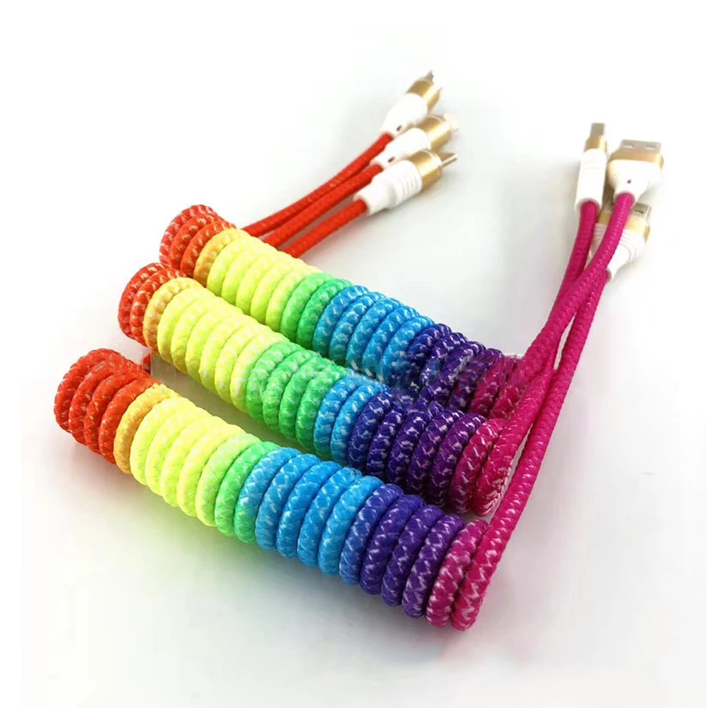 Пружинный кабель Выдвижной 2.4A кабель для быстрой зарядки кабель для передачи данных Тип C Micro USB гибкий эластичный кабель для зарядного устройства
