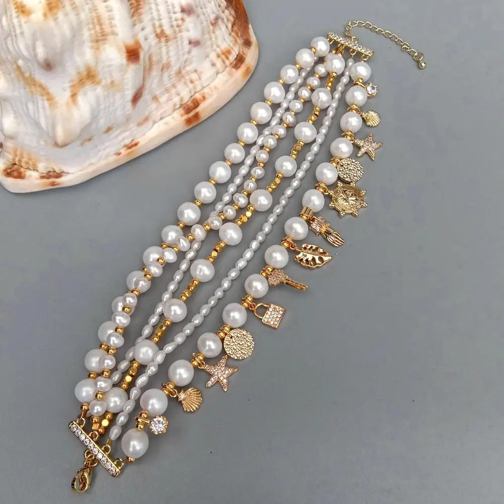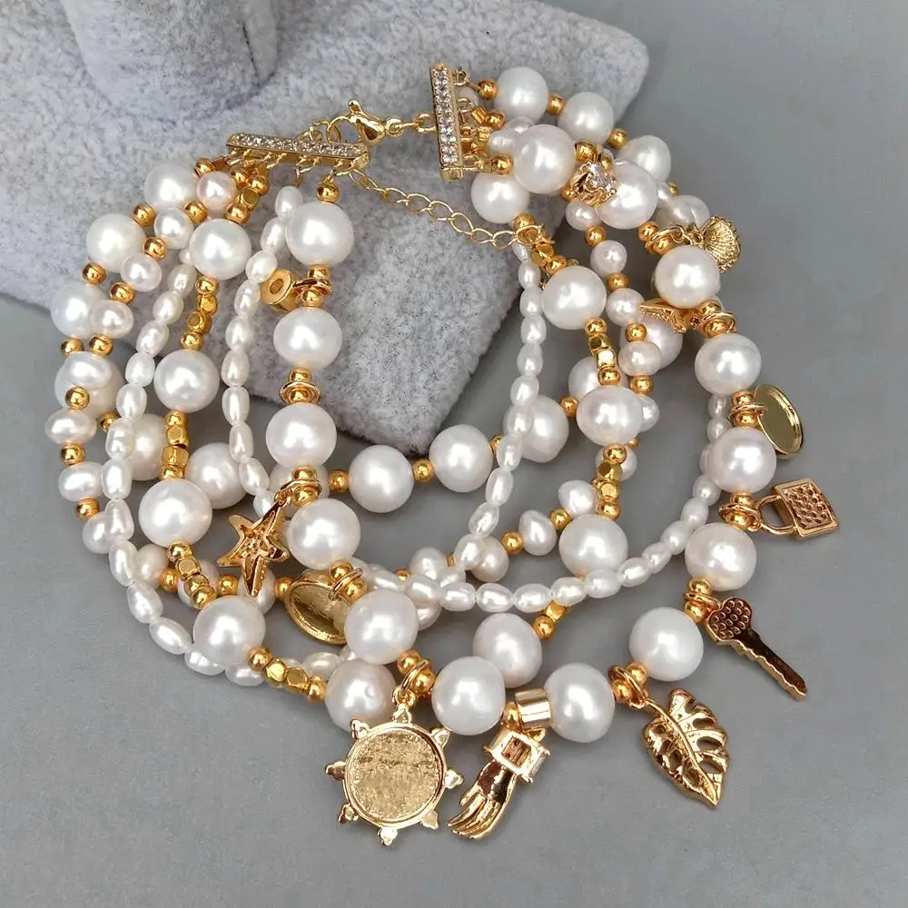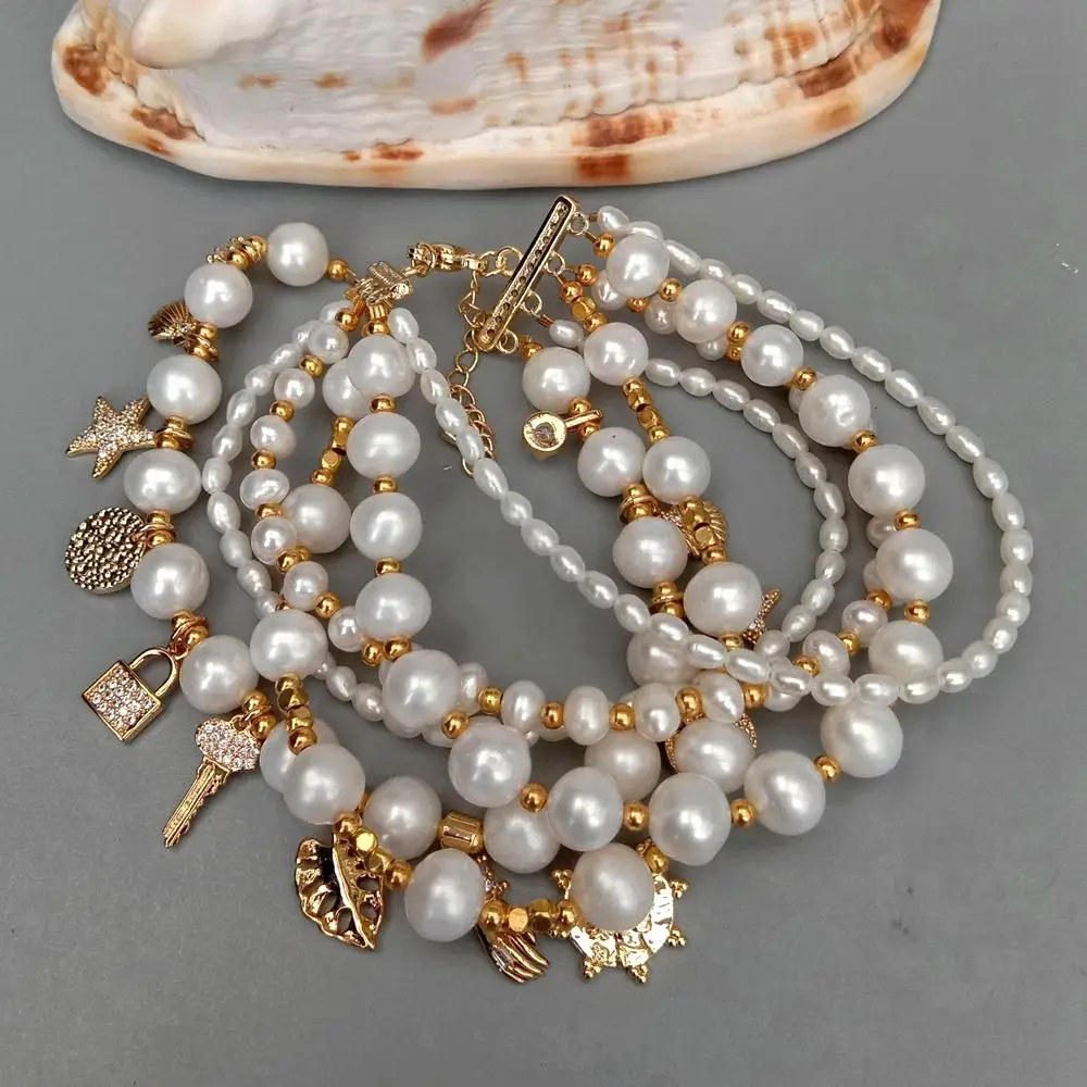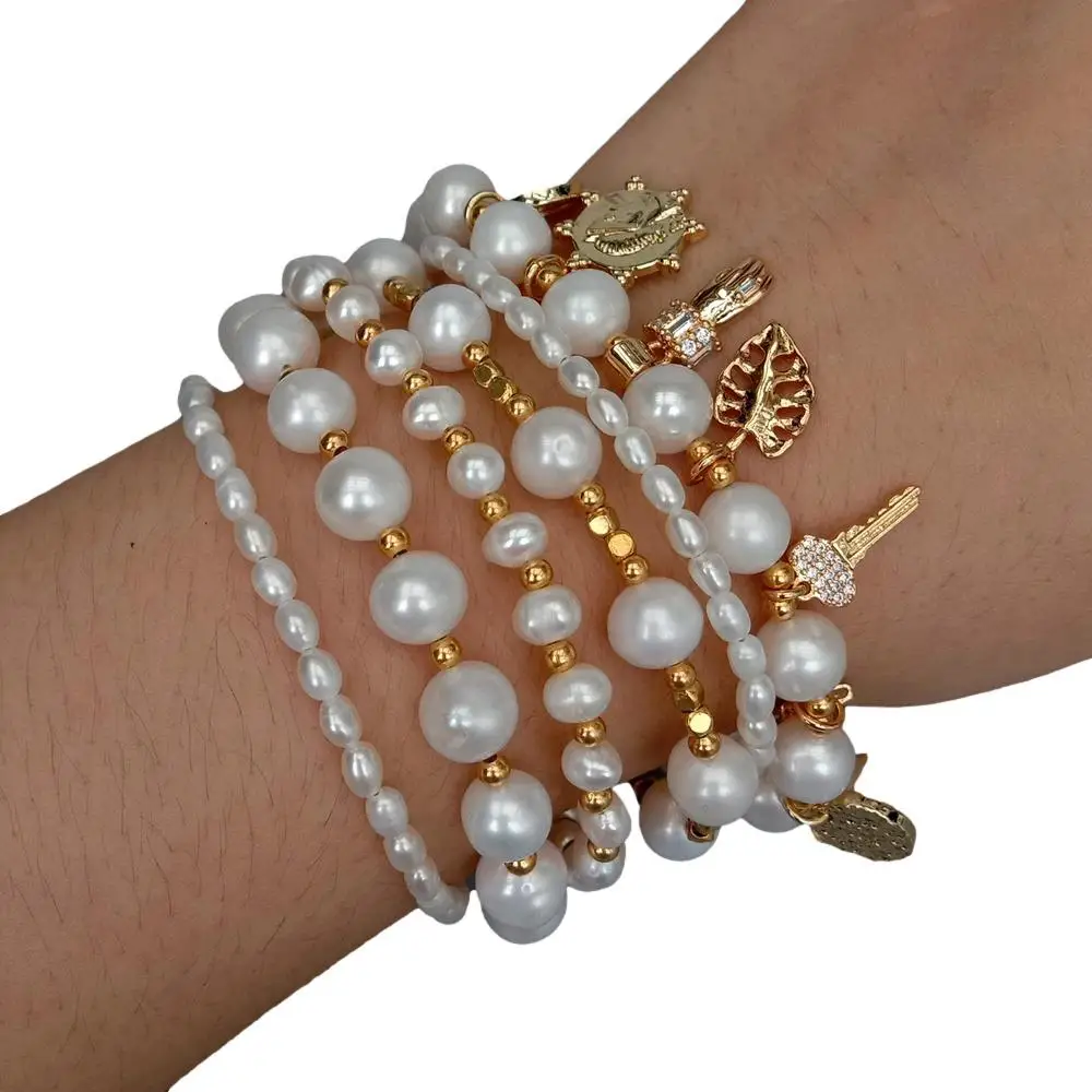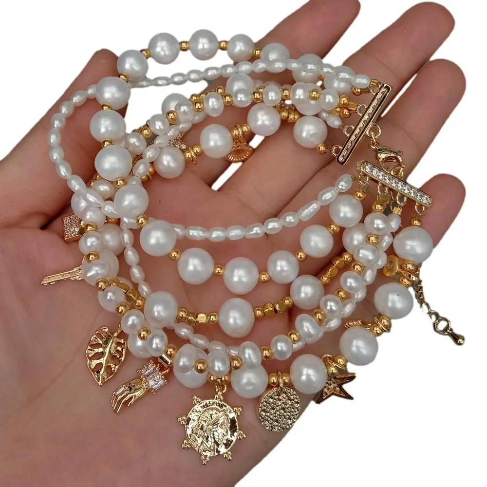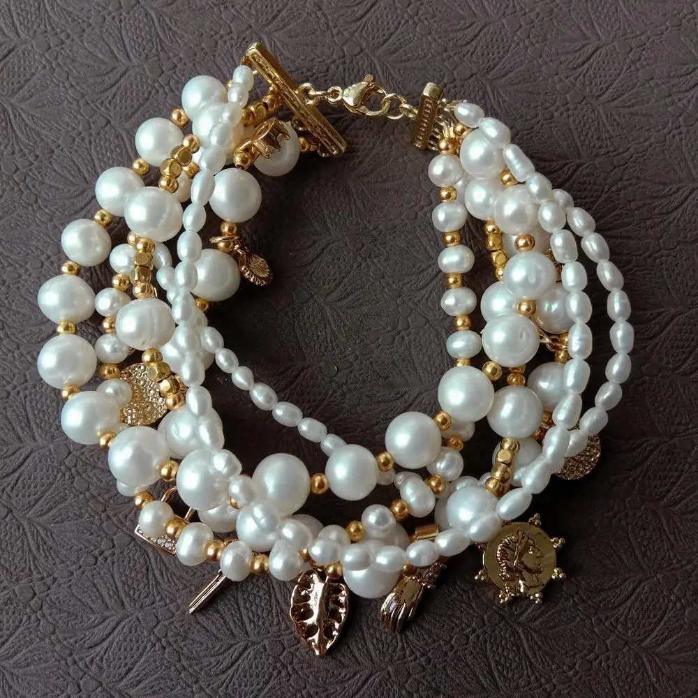 Информация о драгоценных камней: пресная вода культивированный жемчуг, белый жемчуг в форме риса и картофеля жемчуг, Cz проложить очарование, хорошее качество, высокий блеск!