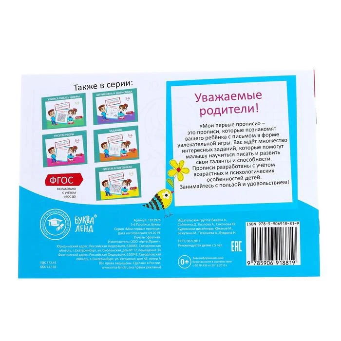 Сертификация ЕАЭС N RU Д-RU.АИ77.В.28851 Тематика книг для дошкольников Подготовка к школе Тема обучения Буквы, слова, русский язык,Цвета, формы, звуки,Цифры, счёт, математика Вид книги (книжки с наклейками и новогодние) Обучающие книги Вид набора детских книг Прописи Набор (Да/нет) Да Количество страниц 20 Тип обложки для книг Мягкий переплёт Вид пособия Прописи Возраст ребенка От 5 летОчень долго искала такое платье, хотелось что-то простое но интересное, и вот наткнулась на него, заказала, спасибо за быструю доставку.... Читать отзыв полностью...