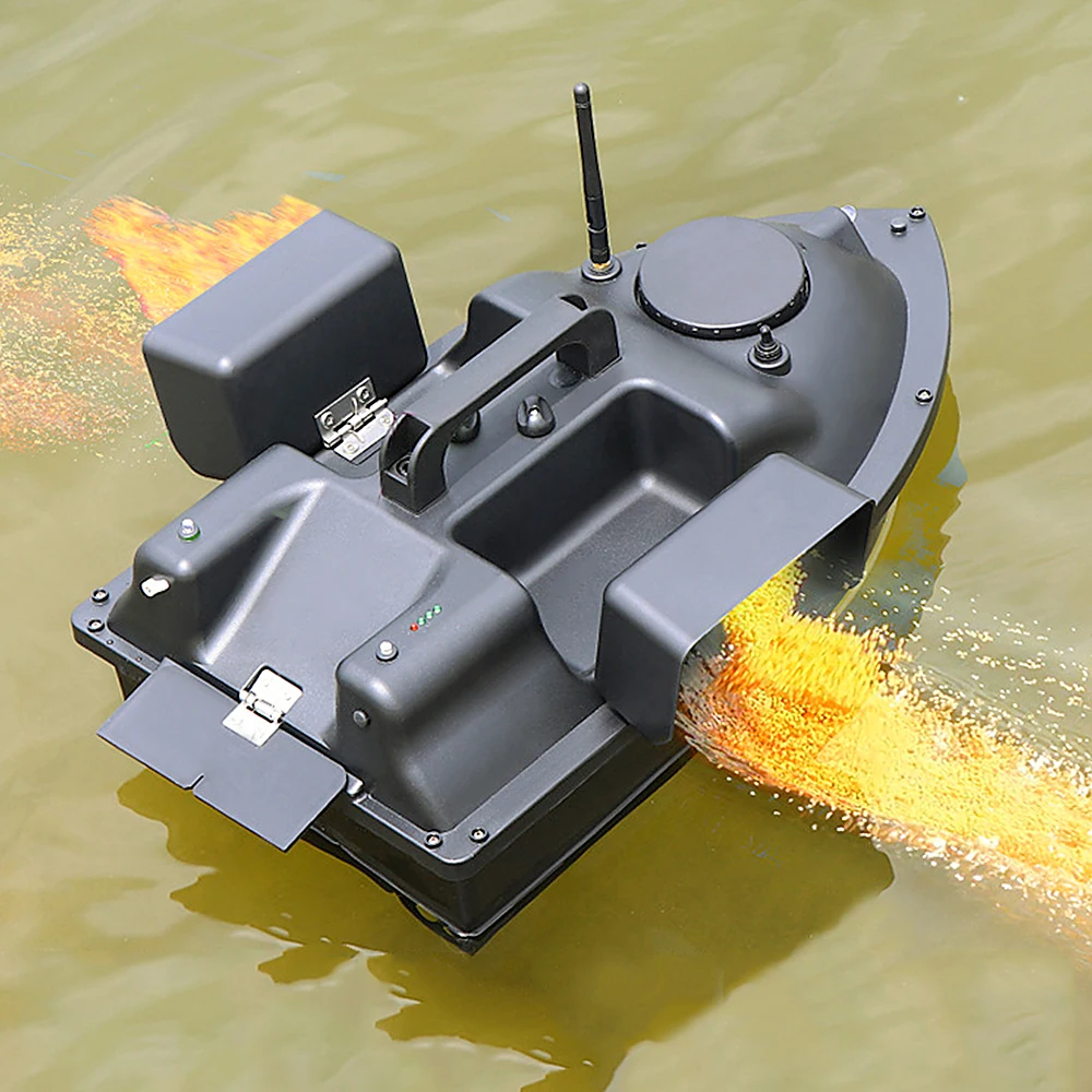 Беспроводное управление позволяет высвобождать приманку далеко в озере, речке и водоемах. 3. Контейнеры для наживки могут вместить около 4,4 фунта приманки для ловли игровых рыб. Легкое управление для любителей рыбалки или начинающих, а также приятно для детей.