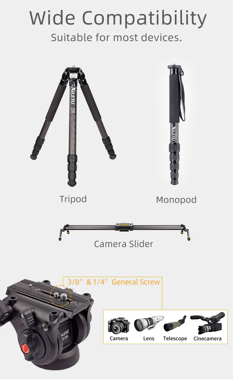 XILETU LS-6A с жидкостной головкой для видеокамеры, штатива с подвижной поворотной головкой с 1/4 "быстроразъемной пластиной для Canon Nikon Sony DSLR Camera s Camcorder Shooting