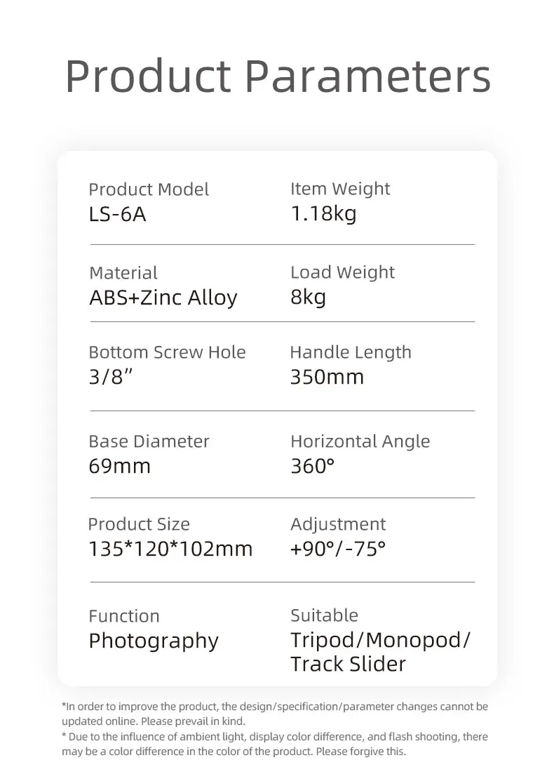 3/8 дюймовая Нижняя резьба: нижняя часть шаровой головки спроектирована с резьбой 3/8 дюйма, поэтому вы можете прикрепить ее к штативу, моноподу, подставке под светильник, или Слайдеры для камеры для добавления большей гибкости в изменении угла для повышения эффекта съемки. Примечание: Этот продукт не включает камеры, штатив, монопод или слайдер