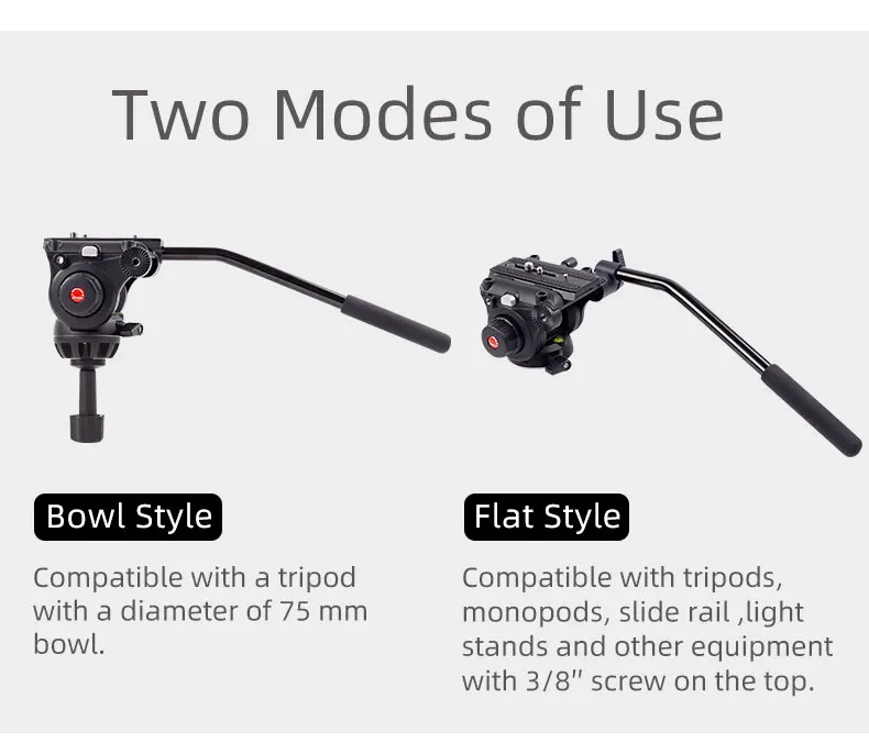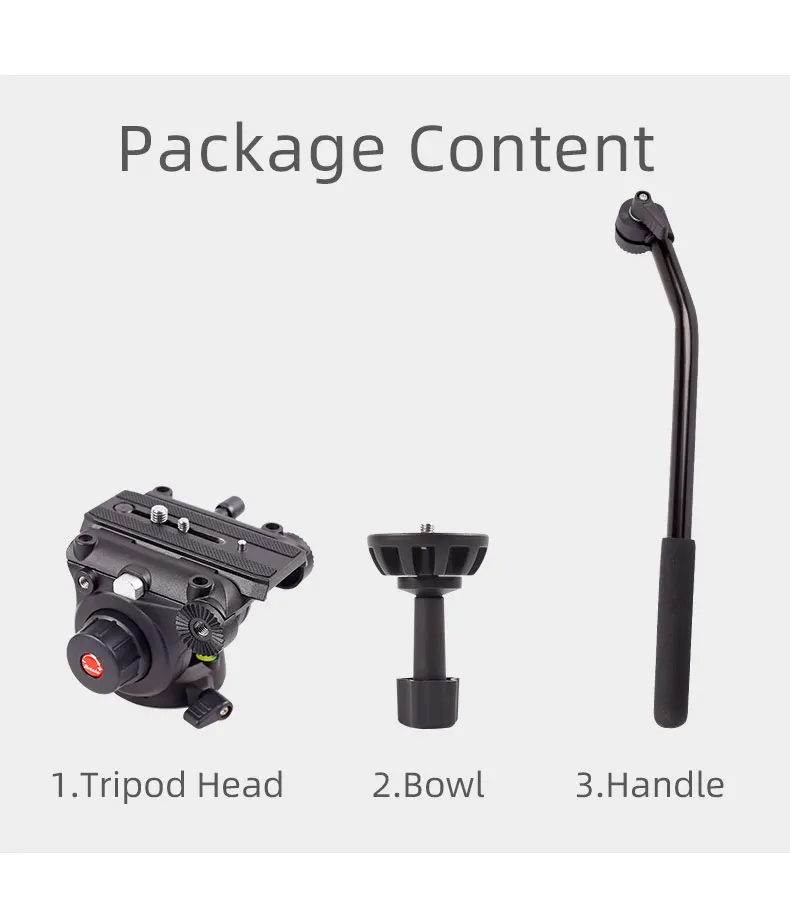 Отличное качество: Эта Профессиональная жидкая видеоголовка изготовлена из высококачественного цинкового сплава, изготовленная по прецизионным технологиям ЧПУ и литья, максимальная нагрузка составляет 5 кг, она идеально совместима с большинством крупных профессиональных штативов и моноподов, это хороший партнер для большой камеры и объектива.