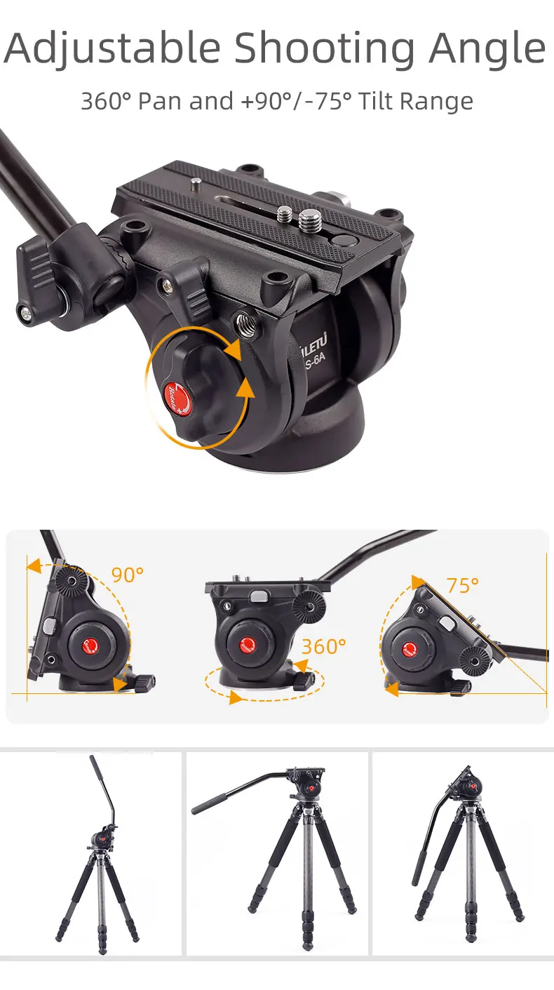 Широкий диапазон движения: Эта головка подходит для видеосъемки, так как она обеспечивает широкий диапазон движения и плавное демпфирование. Его можно поворачивать на 360 градусов плавно по горизонтали, Диапазон наклона-от-75 ° до 90 °, а замок прочный, так что вы можете делать фотографии, что хотите.