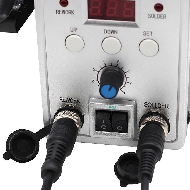 Паяльная станция 2 в 1 с горячим воздухом и горячим утюгом;