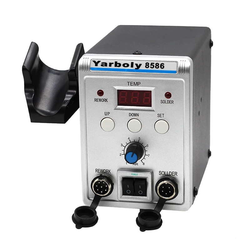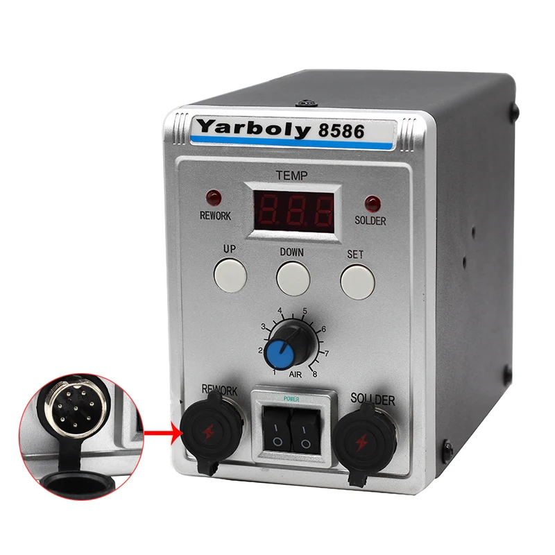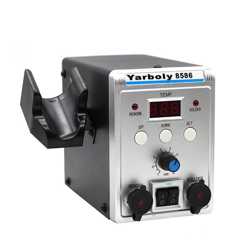 Это совершенно новая паяльная станция SMD 2 в 1 8586. Металлический корпус из сплава с высококачественным силиконовым корпусом отличается элегантным внешним видом