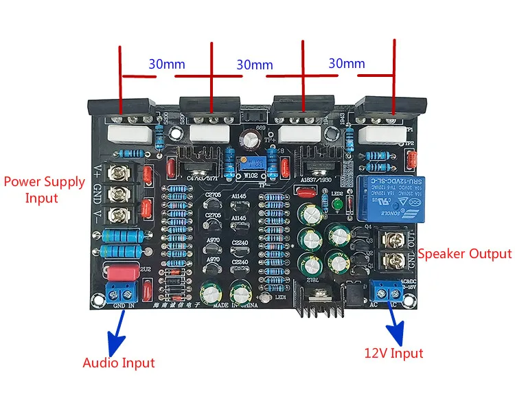 Плата-моно усилитель мощности. Конструкция цепи использует A970/C2240 Высокое напряжение аудио Пара трубки двойной дифференциальной цепи и A1145/C2705 для усиления напряжения, способствует использованию средней мощности пара труб A1837/C4793, И на выходном этапе используется пара труб A1943/C5200 высокой мощности Toshiba.