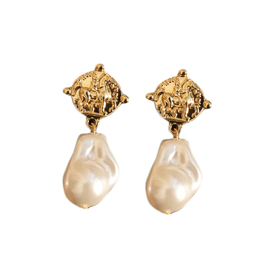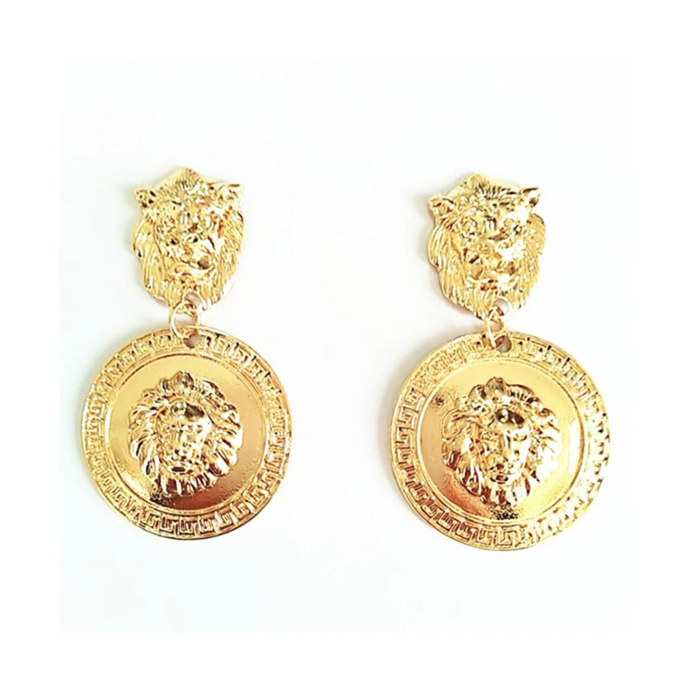 Серьги в виде монет Лев милые серьги-гвоздики золотые металлические геометрические винтажные женские Вечерние