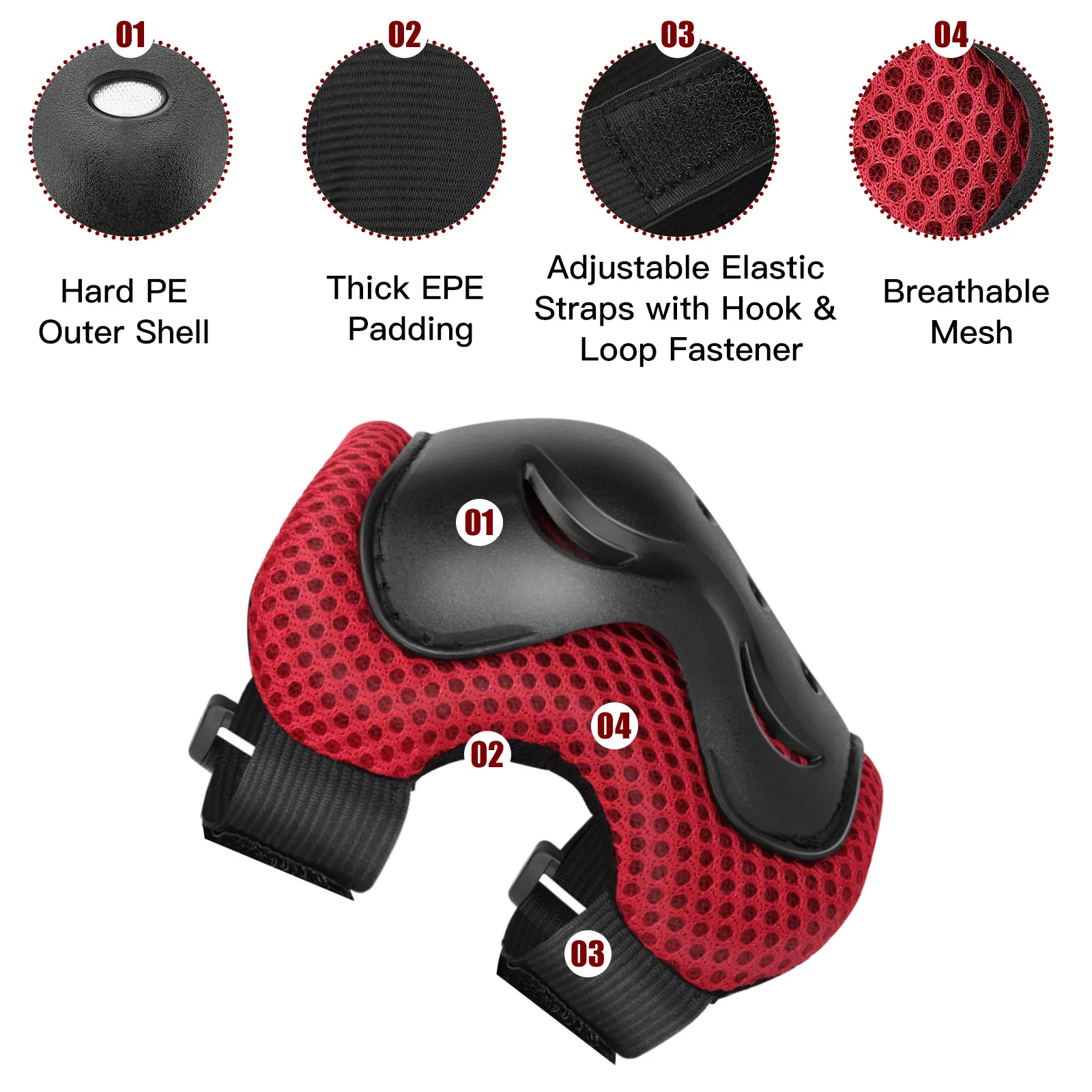 -Высококачественный материал: наколенники, налокотники и запястья изготовлены из прочного полиэтиленового материала и дышащей сетки, т. Д.