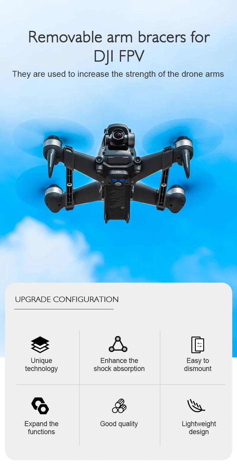 Легко собирается и разбирается, рукоятки дрона DJI FPV эффективно повышают прочность руки дрона и уменьшают риск повреждения руки дрона.