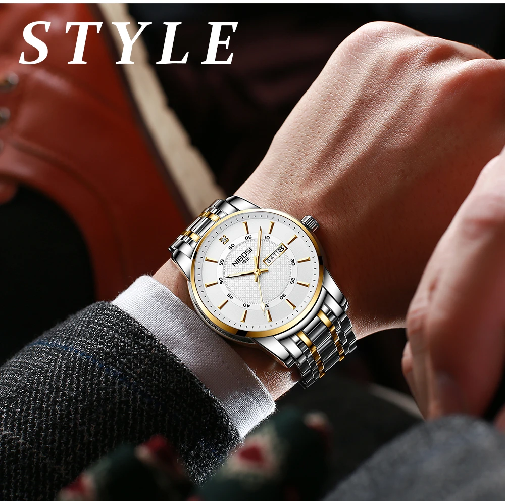 NIBOSI роскошные золотые мужские часы Лидирующий бренд Авто Дата светящиеся кварцевые часы мужские водонепроницаемые Неделя дисплей платье мужские часы Relogio