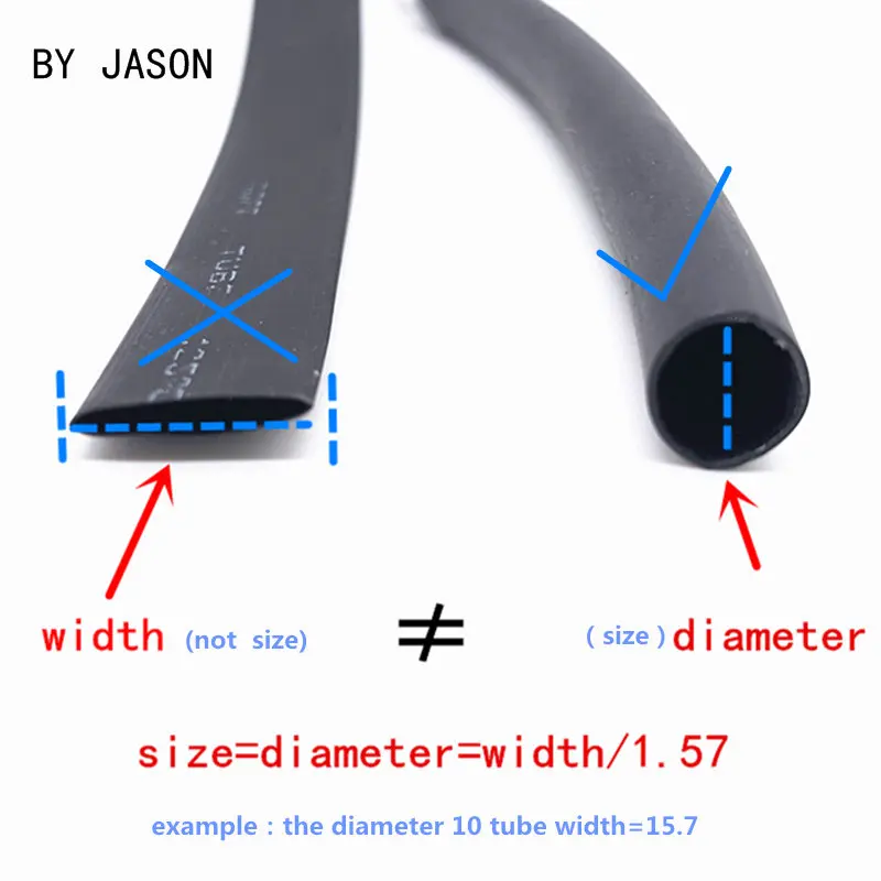 Пример: диаметр трубки 10 мм = ширина 15,7. Если вы хотите, ширина 10 мм, вы должны заказать 10 мм/1,57 = 6 мм диаметр.