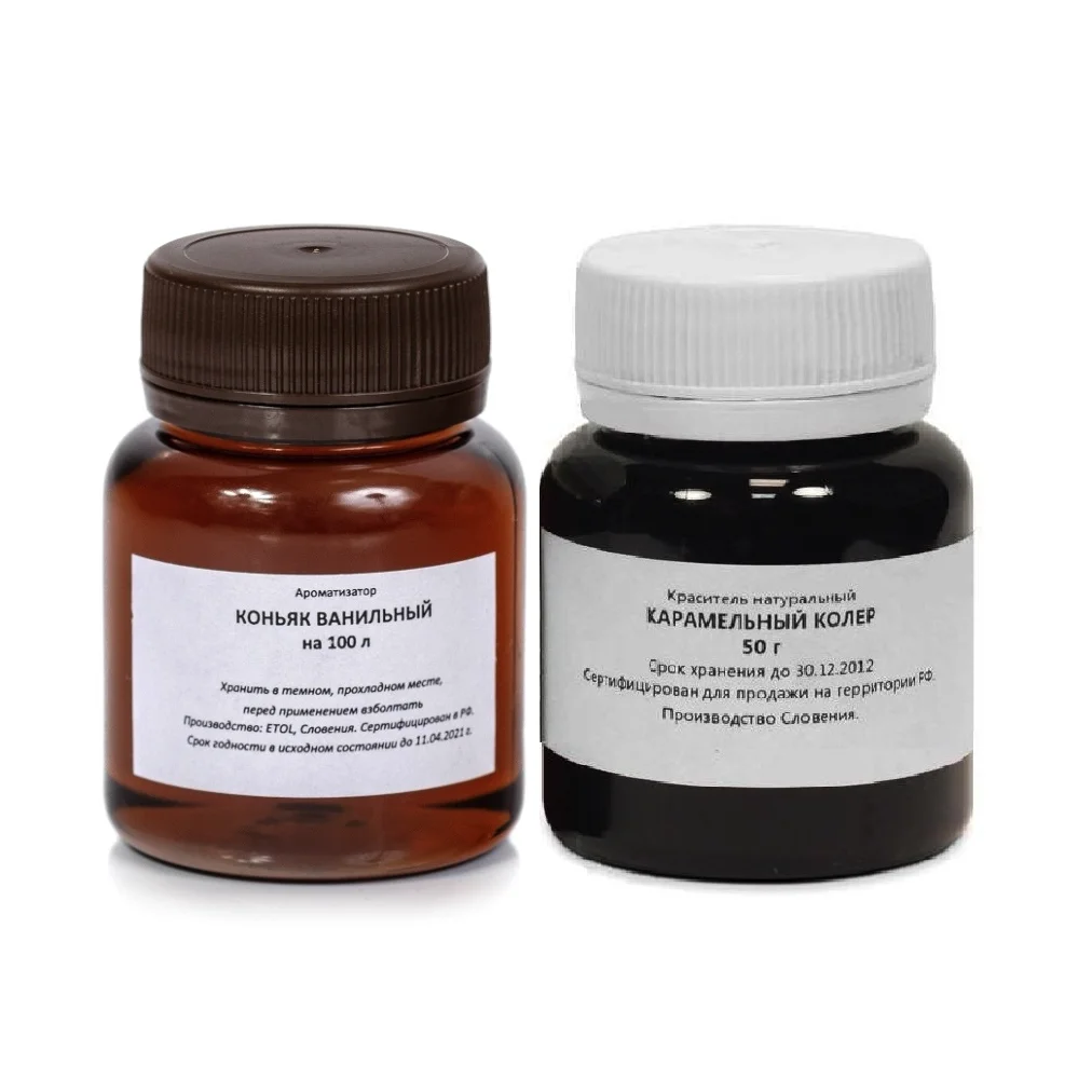 2) Карамельный колер (50 грамм) - сахарный колер E150A, необходимый для подкрашивания напитка и придания ему коньячного (золотисто-желтого) цвета.