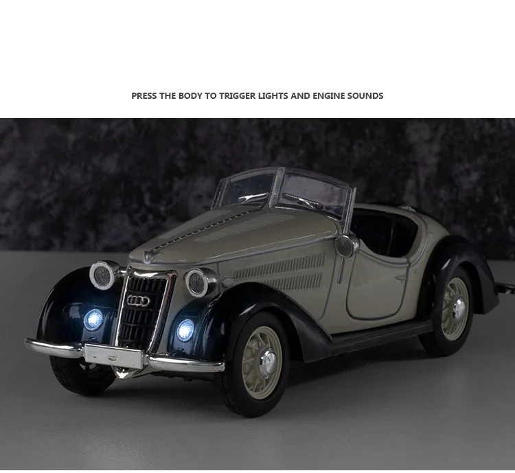 1:32 Масштаб Классическая винтажная литая под давлением Модель автомобиля игрушки Audi Wanderer W25K Roadster Реплика с оттягивающимся звуком и светильник подарки для мальчика
