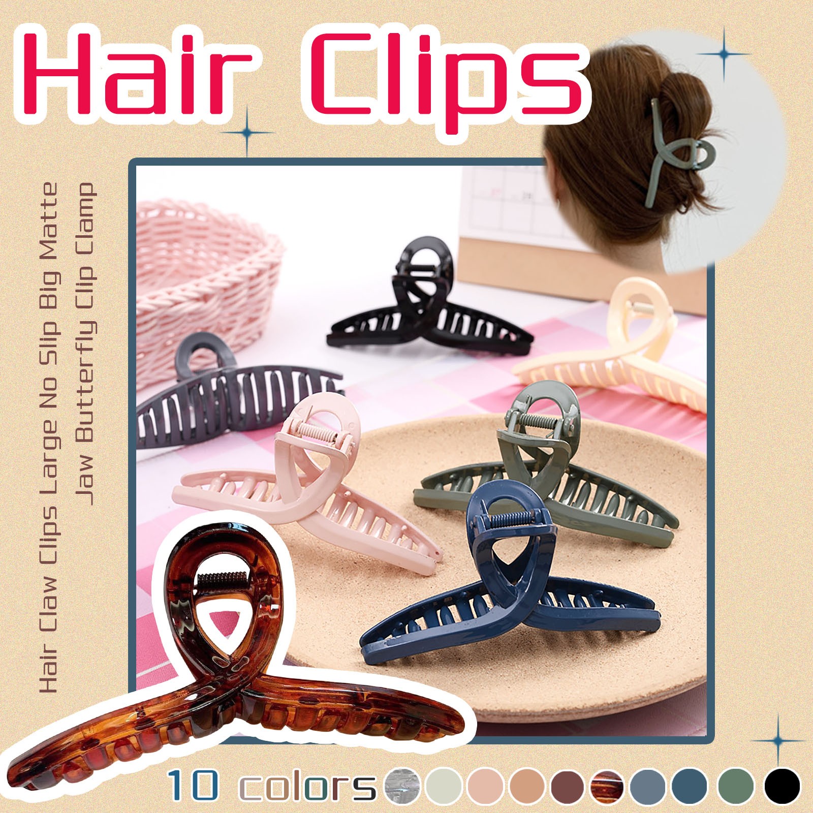 Sturdy Material: The hair clip claw is made of solid plastic. The strong spring makes the clamp easy to open and close, and don't snap unexpectedly. Wide Application: Perfect for either thin fine or thick curly wavy hair. Comfortably hold all day and will not poke into your scalps. Stay Secured: The teeth are close enough together so that the hair will be held well and don’t need to be readjusted throughout the day. Great Gift Ideas: 10 pieces in a set are perfect for you to give as gifts around the holidays. Perfect for ladies and girls of all ages.Package Included: