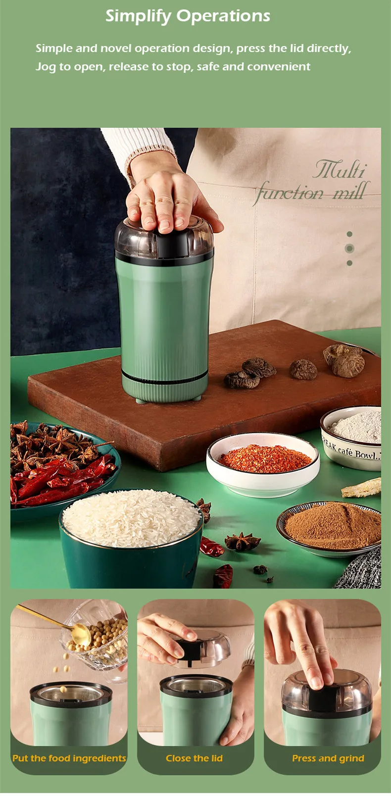 -5. Идеально подходит для измельчения кофейных зерен, орехов, семян, трав, специй и т. д., экономит ваши усилия и время.